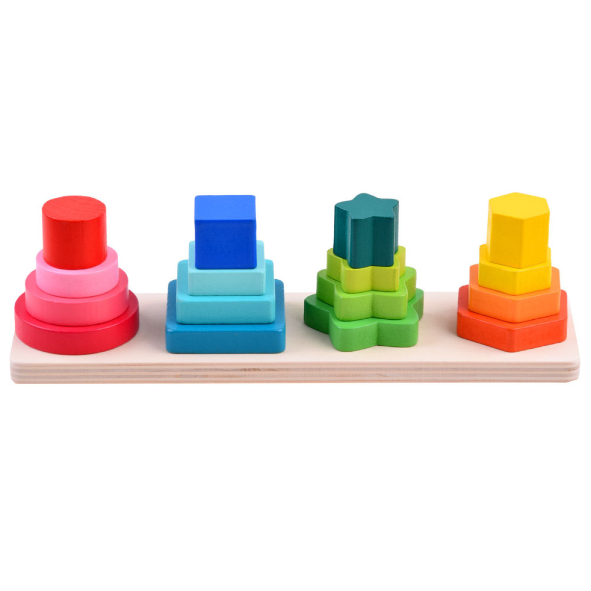 Rotaļlieta sastāv no dēlīša ar četriem stabiņiem. Bērnam ir jāizkārto figūras, un te sākas spēle! Figūras var izkārtot pēc krāsas, formas, lieluma vai kā vien iztēle atļauj.