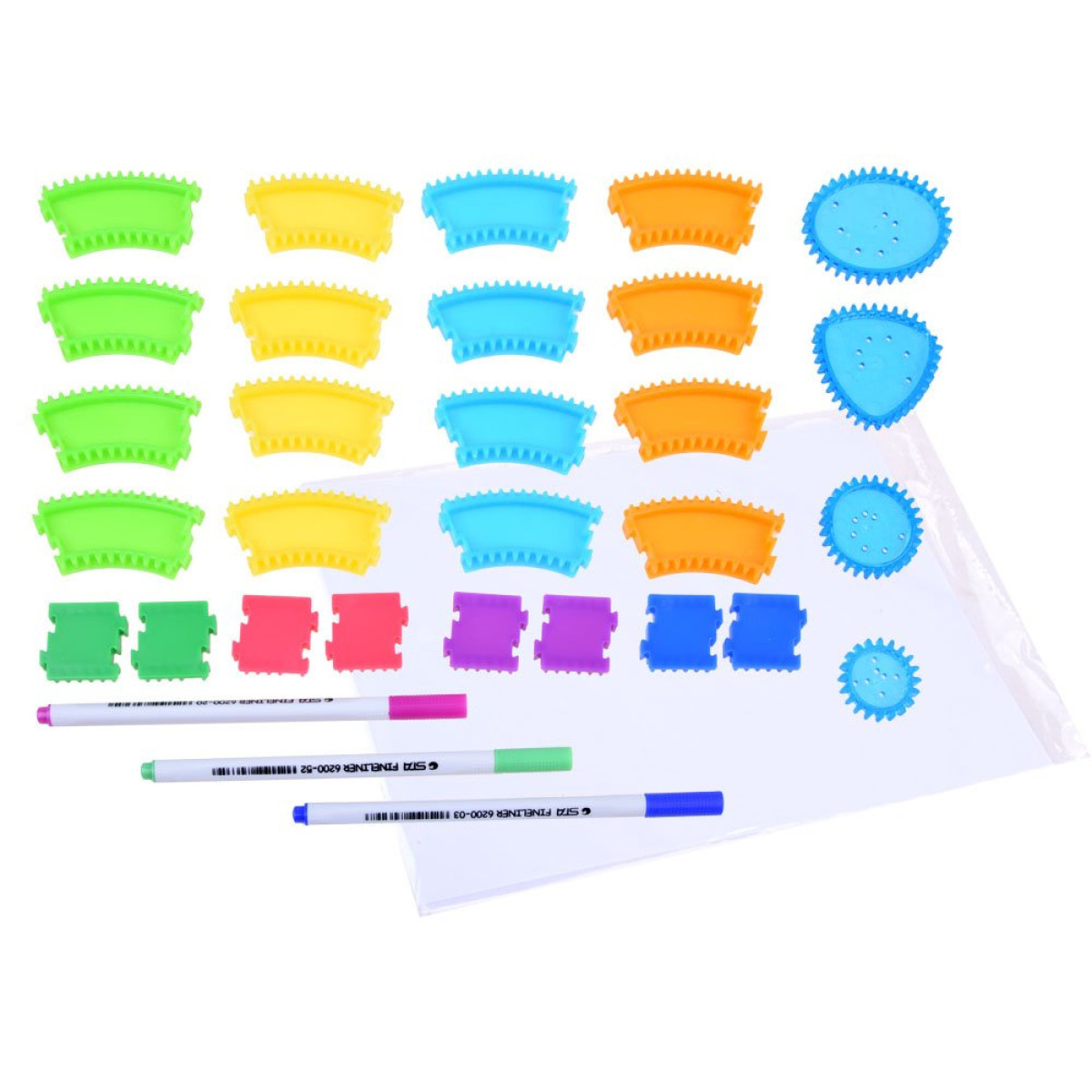Spirografs ir ideāls piedāvājums bērniem un pieaugušajiem, kuri mīl veidot, zīmēt un atklāt bezgalīgas rakstu iespējas. Šis unikālais komplekts nodrošina daudzas stundas aizraujošu un radošu izklaidi, ļaujot veidot unikālus zīmējumus un dekorācijas.