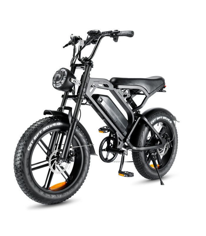 With a 700W average motor , the Sponge Scrambbler Bike can reach a maximum speed of 45km/h. It also has a 15ah, 48V battery that can last for 45-65km per charge, depending on the mode and terrain. You can adjust the speed and torque according to your preference with the 7-speed Shimano mechanical shifting system.