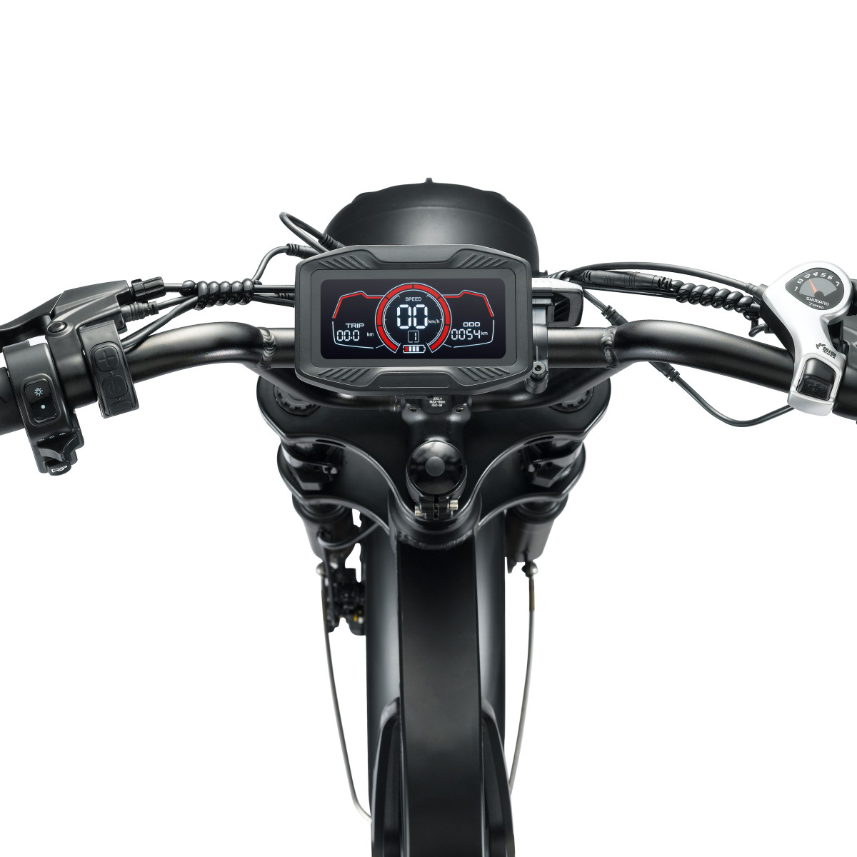 Riding the Sponge Scrambler Bike is comfortable and safe. It has a large LCD screen that displays the speed, battery level, distance, and other useful information. It also has dual front hydraulic suspension that absorbs shocks and bumps on rough roads. The 204 fat bike tires offer excellent traction and stability on any surface.
