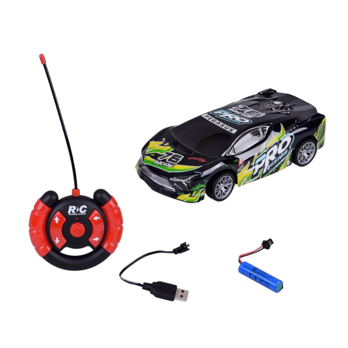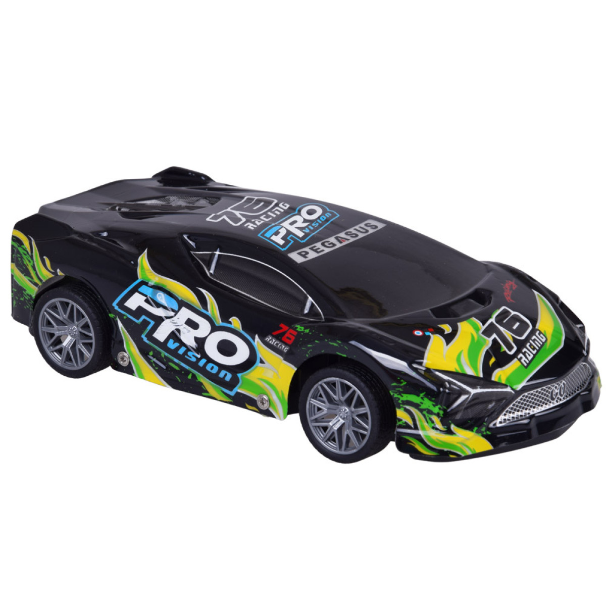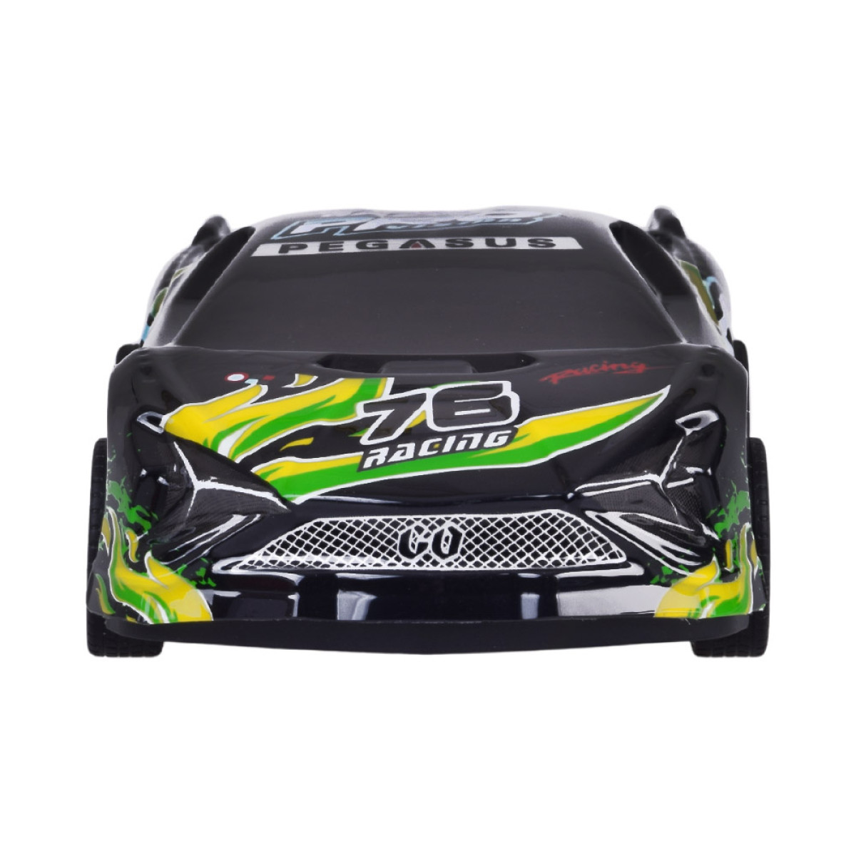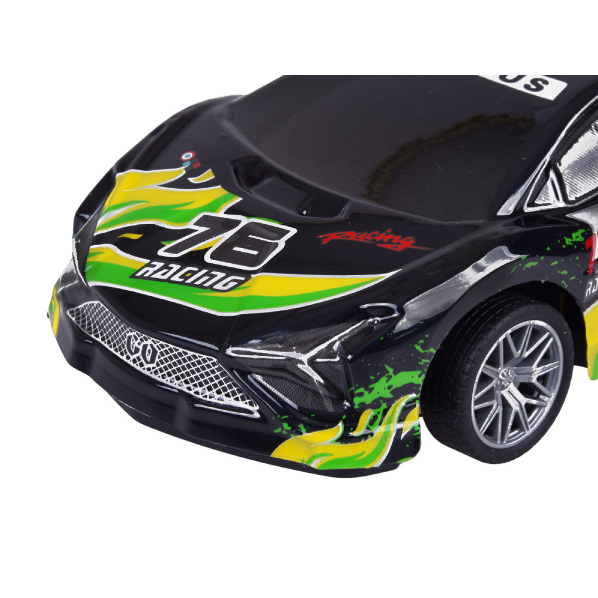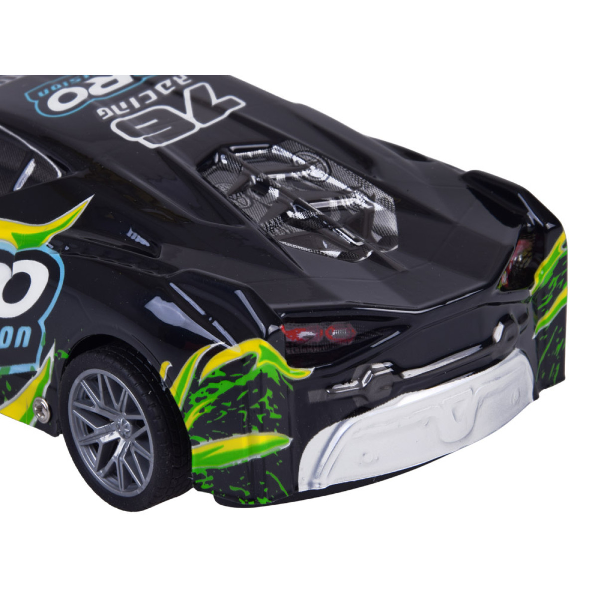 šis sporta auto ar tālvadību ir lieliska izvēle bērniem un visiem ātru automašīnu cienītājiem, kuriem patīk aizraujoša un dinamiska izklaide. Modelim ir viegls un izturīgs plastmasas korpuss melnā krāsā ar krāsainiem uzrakstiem, kas piešķir tam izteikti sportisku izskatu. Braukšanas laikā virsbūve efektīgi iedegas un mirgo, tāpēc auto izskatās īpaši pievilcīgi pustumsā.