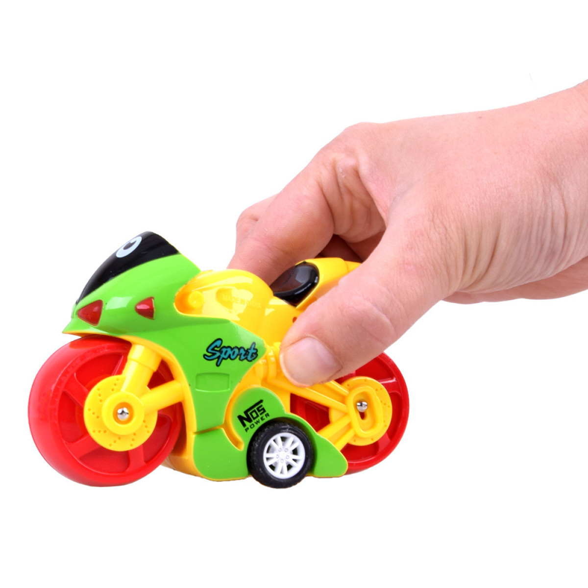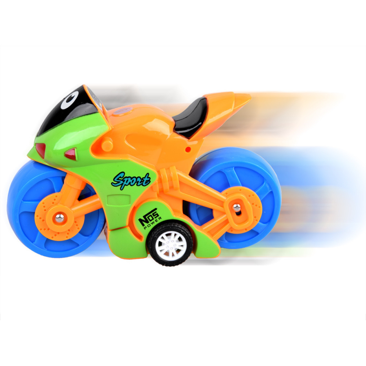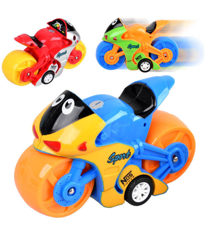 Jauns, lielisks sporta motocikls. Šī rotaļlieta iepriecinās katru mazo sporta transportlīdzekļu fanu. Tā ir rotaļlieta, kas paredzēta jaunākajiem un attēlo jautru motociklu, kas darbojas ar riteņu iebūvētu atsperu mehānismu. Motocikls tiek darbināts ar maza vadītāja roku spēku.