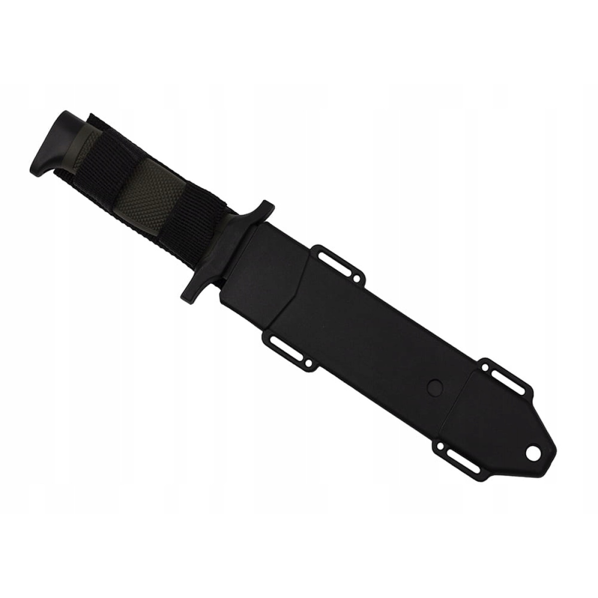 Nazim ir melna, klasiskā plastmasas maksts, kuru viegli piestiprināt pie aprīkojuma vai jostas.