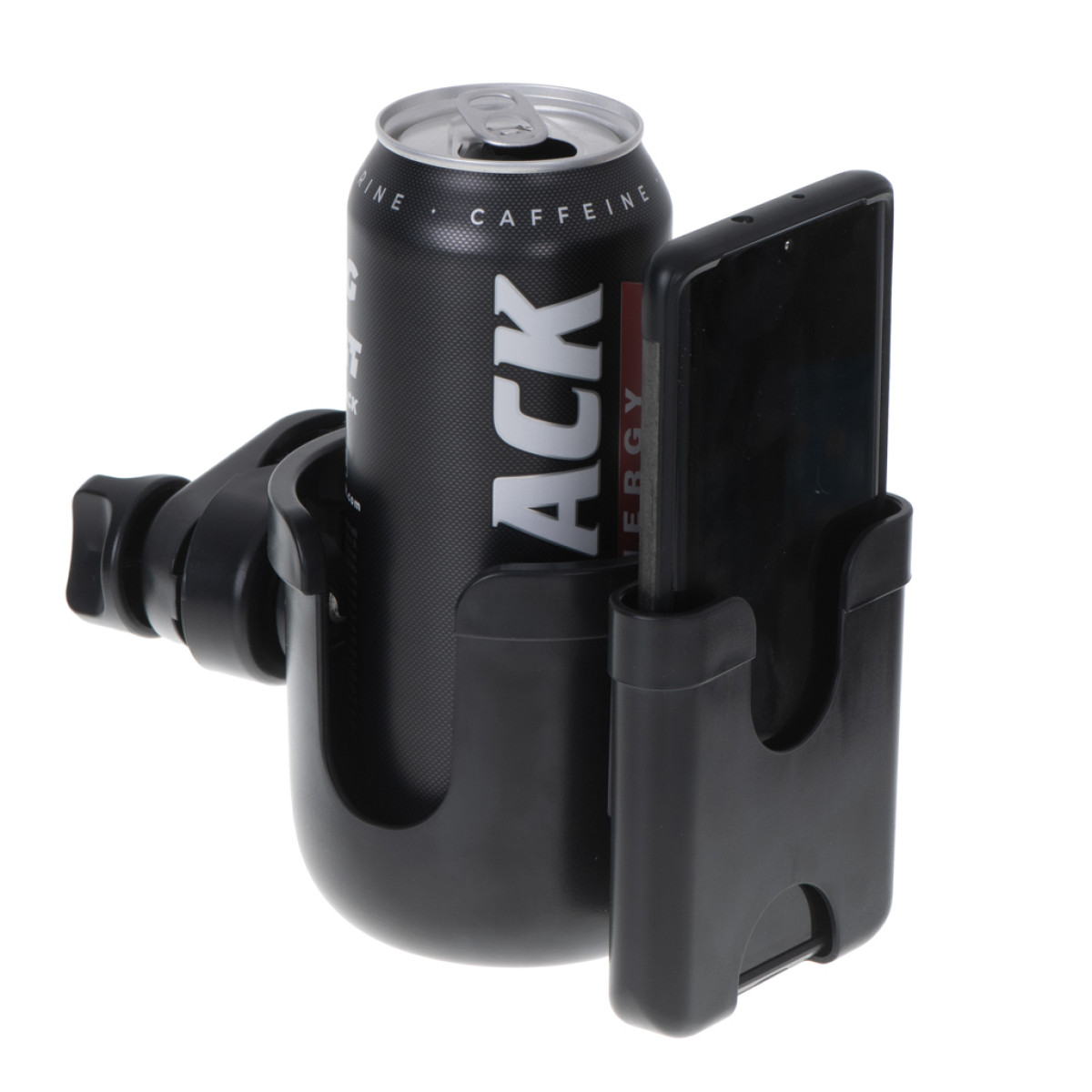 Turētājs der lielākajai daļai ratiņu un var noturēt visu veidu telefonus un dzērienu traukus: pudeles, ūdens pudeles, termosus, krūzes - viss lieliski iederēsies!