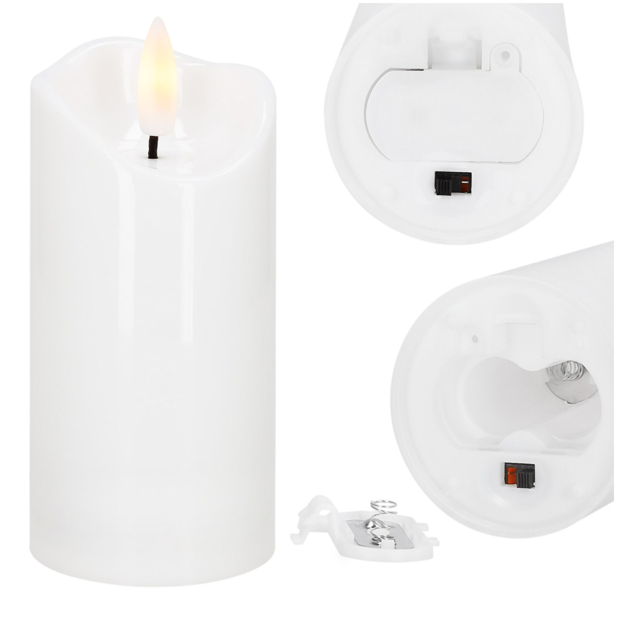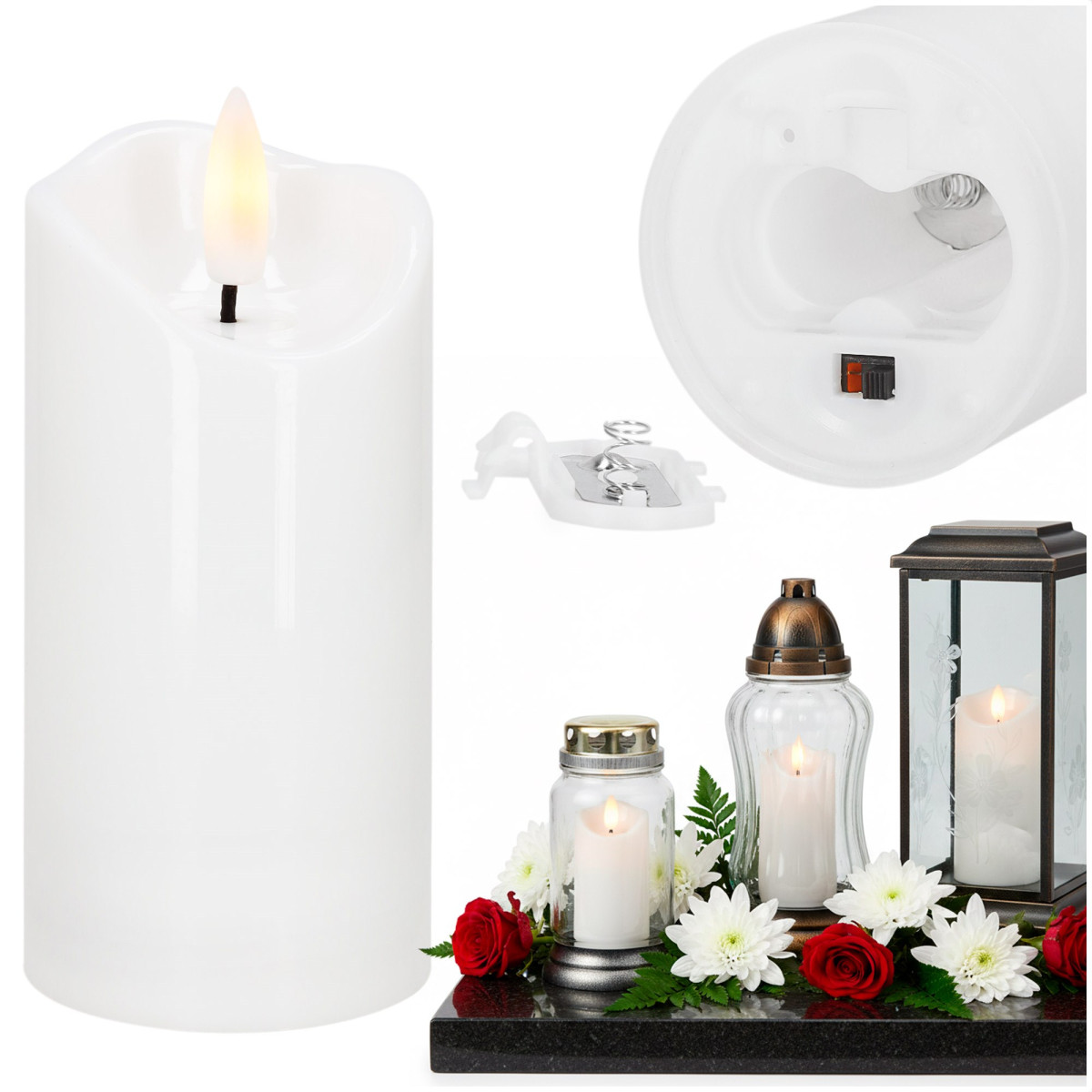 Pamata informācija: Zīmols: Springos® Materiāls: plastmasa Krāsa: balta Gaismas tonis: silti dzeltena Mirdzošas liesmas imitācija Barošanas veids: 2x AA baterijas (nav komplektā) Izmēri: Kopējais augstums: 10 cm Apmales augstums: 9 cm Diametrs: 5 cm Papildu informācija: Ieslēgšanas/izslēgšanas slēdzis, kas ļauj ieslēgt un izslēgt jebkurā laikā Iekārtas korpusa aizsardzības klase: IP20