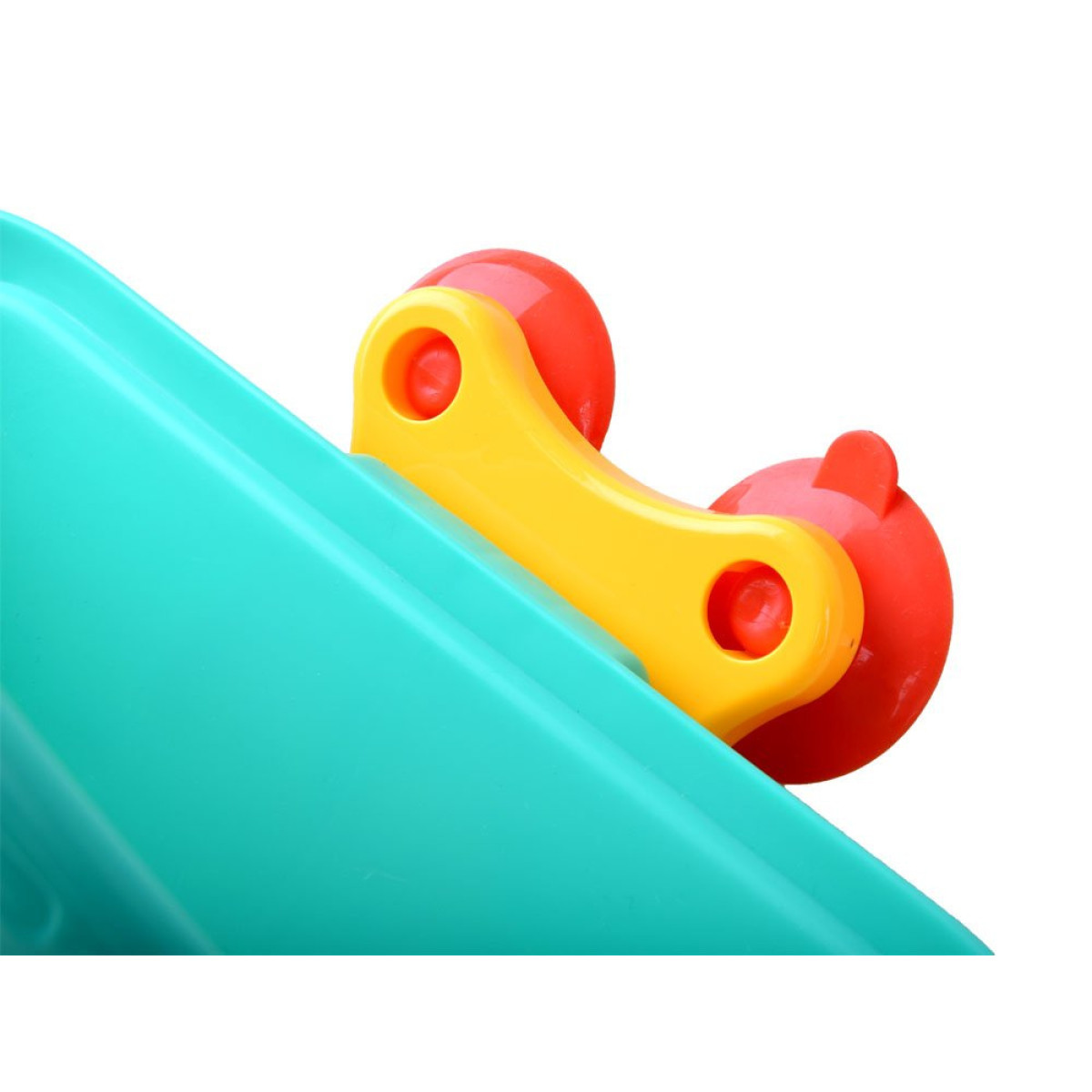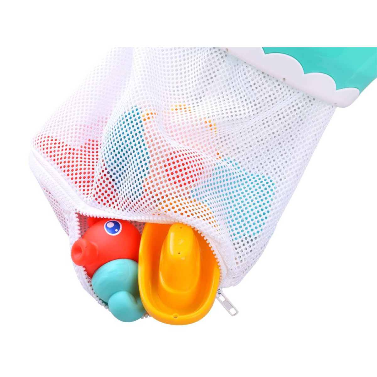 Krāsains kuģis ar organizētāju ir rotaļlietu komplekts spēlēm ūdenī. Šis komplekts palīdzēs radīt fantastiskus jūras piedzīvojumus un stāstus. Lielais plastmasas kuģis ar ērto enkura formas rokturi ir aprīkots ar tīklu, kurā var uzglabāt slapjas rotaļlietas. Kuģis var tikt piestiprināts pie gludas sienas vannas istabā ar piesūcekņiem. Kuģa piparmētru krāsa ar dzelteno enkuru un sarkani-balto glābšanas loku lieliski atbilst jūras krāsu paletēm un iedvesmos radīt jūras stāstus.