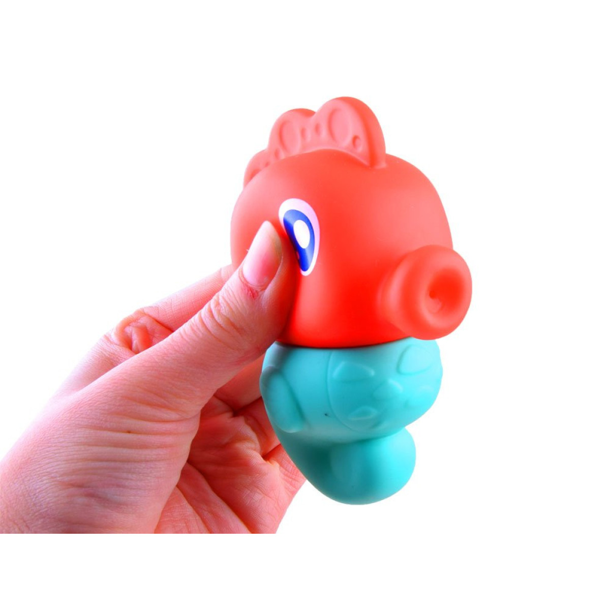 Lieliska krāsu palete un rotaļlietu dizains nodrošinās radošu un ilgu spēlēšanos. Rotaļlietas ir ideāli piemērotas mazajām bērnu rokām. Pēc spēles visas mazās rotaļlietas jāievieto kuģa tīklā, lai tās notecētu un izžūtu.
