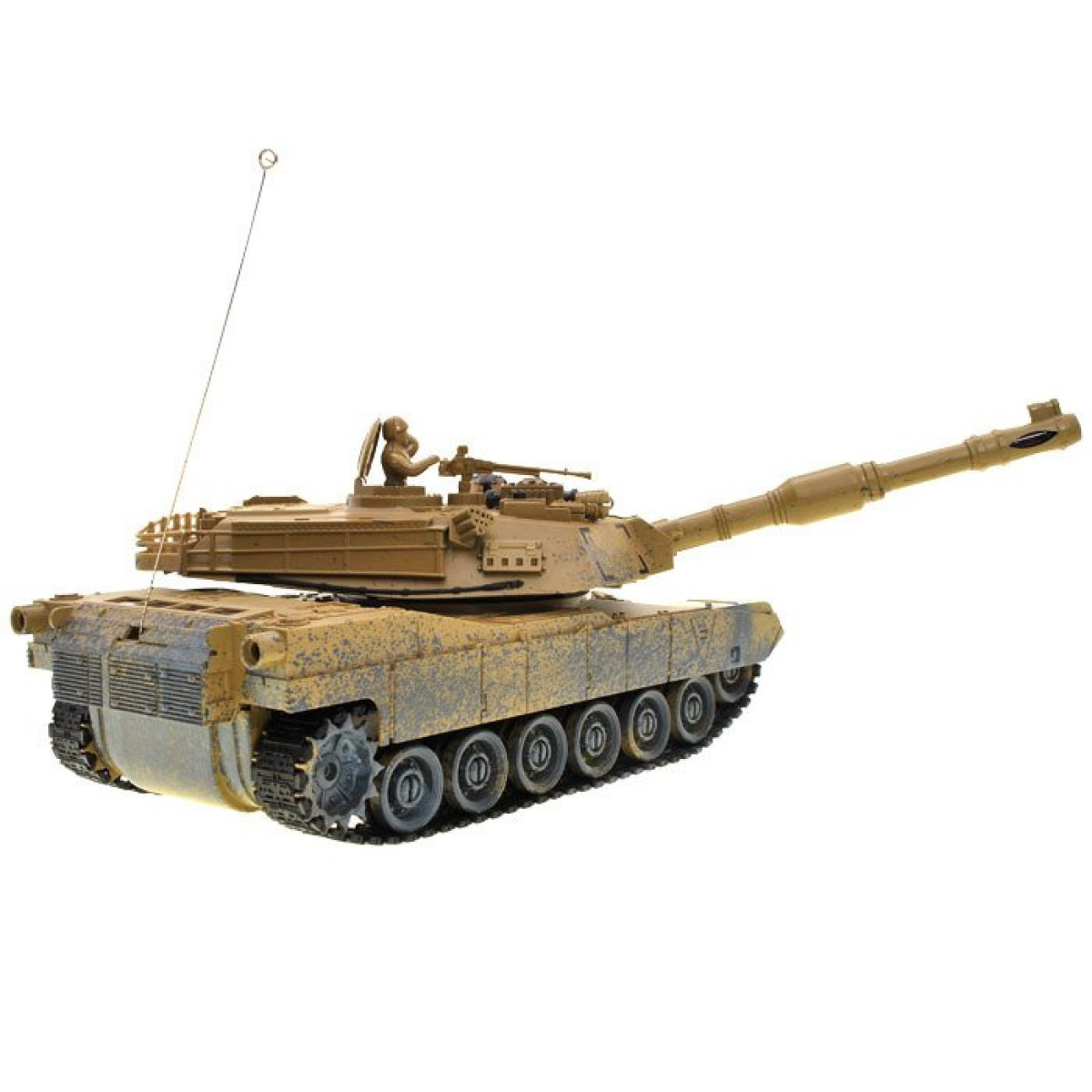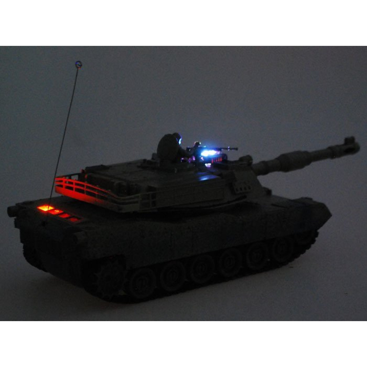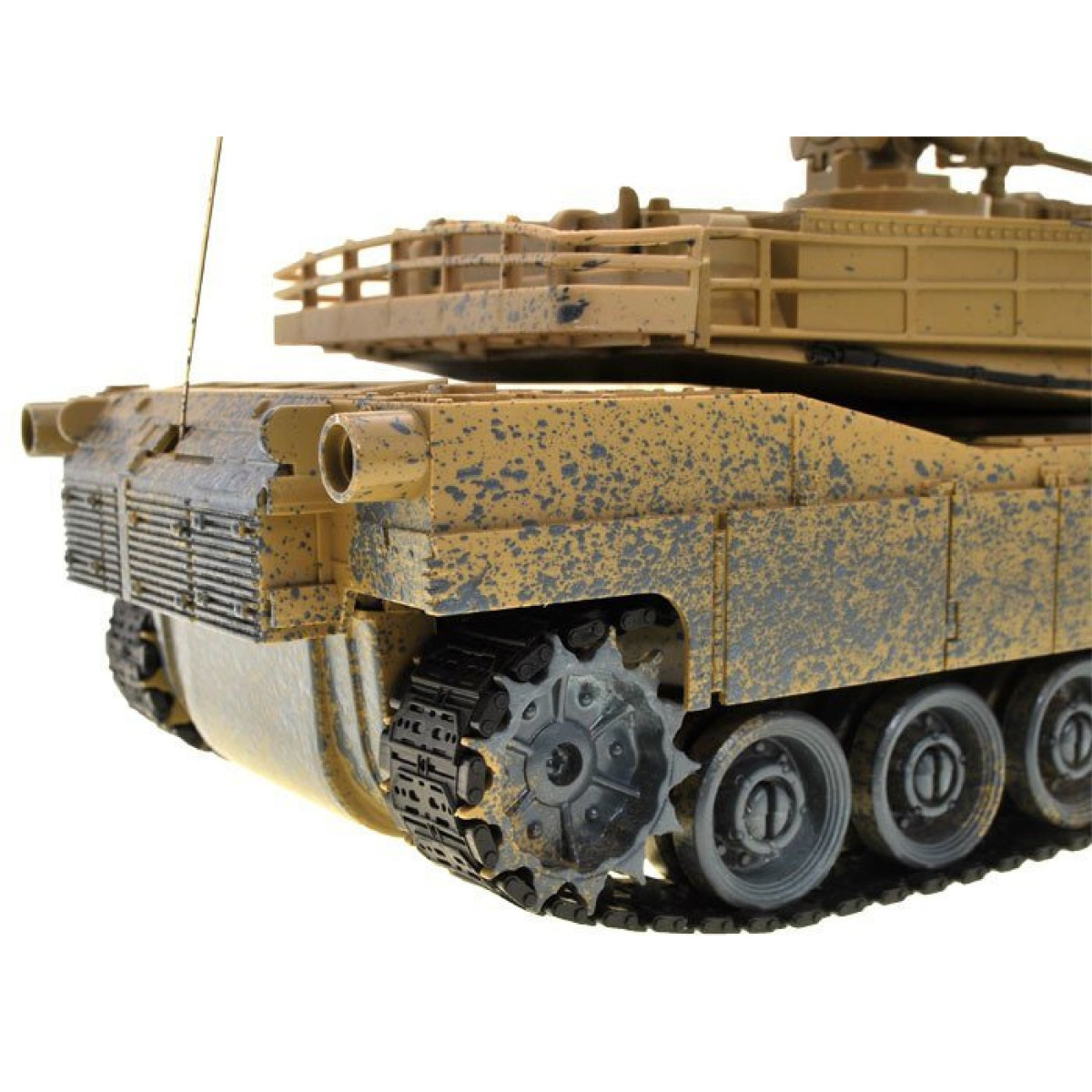 Tanka M1A2 Abrams modelis ar tuksneša maskējumu un gumijas kāpurķēdēm izskatās lieliski dzīvē. Rotējošā tornīte var griezties par 180 grādiem katrā virzienā, nodrošinot 360 grādu uguns iespējas. Tankam ir iespaidīgs apgaismojums, kas izskatās lieliski tumšākā telpā. Transportlīdzeklim ir atverams lūks tornī, kurā var ievietot pievienoto tankistu un ložmetēju. Tanks tiek darbināts ar komplektā iekļauto akumulatoru, kas ievērojami samazina ekspluatācijas izmaksas. Tas var braukt uz priekšu, atpakaļ, pagriezties pa labi un pa kreisi.