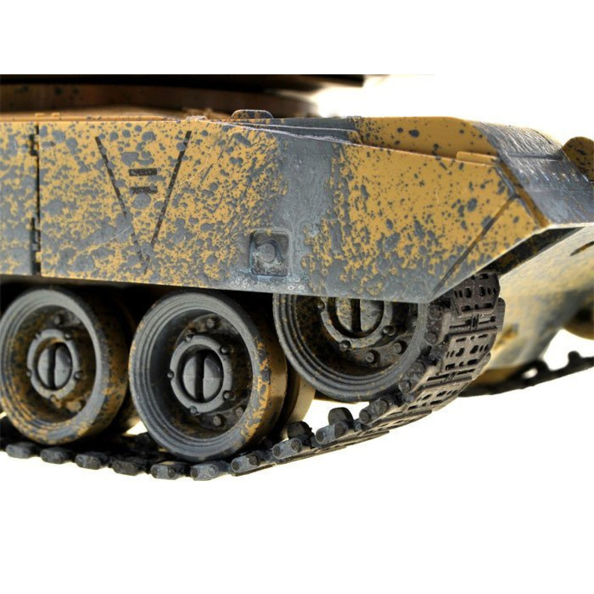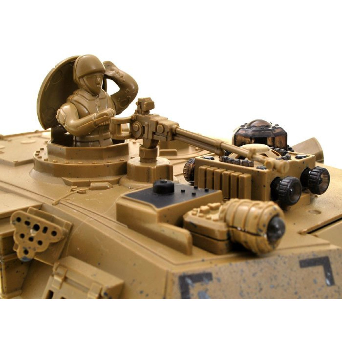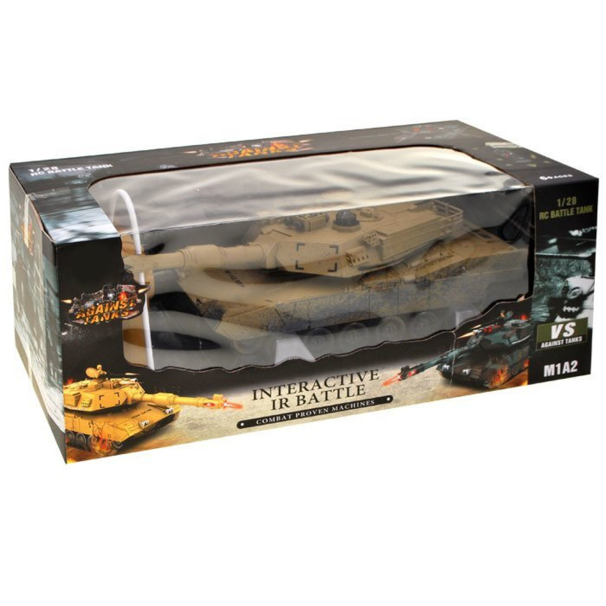 Tanka M1A2 Abrams modelis ar tuksneša maskējumu un gumijas kāpurķēdēm izskatās lieliski dzīvē. Rotējošā tornīte var griezties par 180 grādiem katrā virzienā, nodrošinot 360 grādu uguns iespējas. Tankam ir iespaidīgs apgaismojums, kas izskatās lieliski tumšākā telpā. Transportlīdzeklim ir atverams lūks tornī, kurā var ievietot pievienoto tankistu un ložmetēju. Tanks tiek darbināts ar komplektā iekļauto akumulatoru, kas ievērojami samazina ekspluatācijas izmaksas. Tas var braukt uz priekšu, atpakaļ, pagriezties pa labi un pa kreisi.