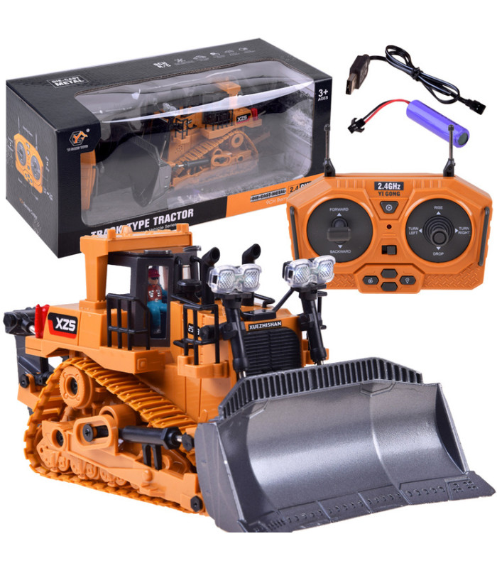 Pilnībā vadāma lāpsta, kuru var pacelt un nolaist ar pulti. Lāpstu var izmēģināt, piemēram, ar klucīšiem uz līdzenas virsmas, un ar buldozeru tos savākt vienā vietā. Rotaļlieta viegli pārvar mazākas šķēršļus. Aizmugurējo āķi var kustēt tikai manuāli. Lieliska izklaide garantēta. Transportlīdzeklis tiek darbināts ar komplektā iekļauto akumulatoru, kas ievērojami samazina ekspluatācijas izmaksas (uzlādes laiks aptuveni 3-4 stundas).