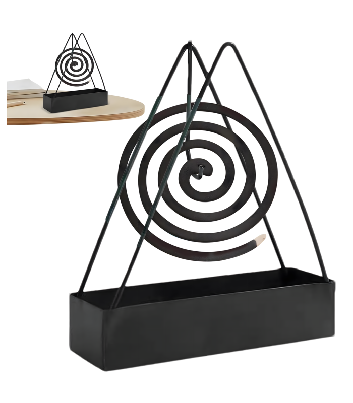 Spirāles turētājs pret odiem – izturīgs, dzelzs turētājs. Apakšējā kamera savāc pelnus. Drošs, estētisks un ideāls lietošanai mājās, dārzā vai terasē!