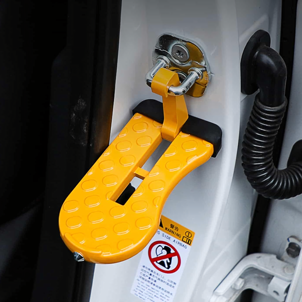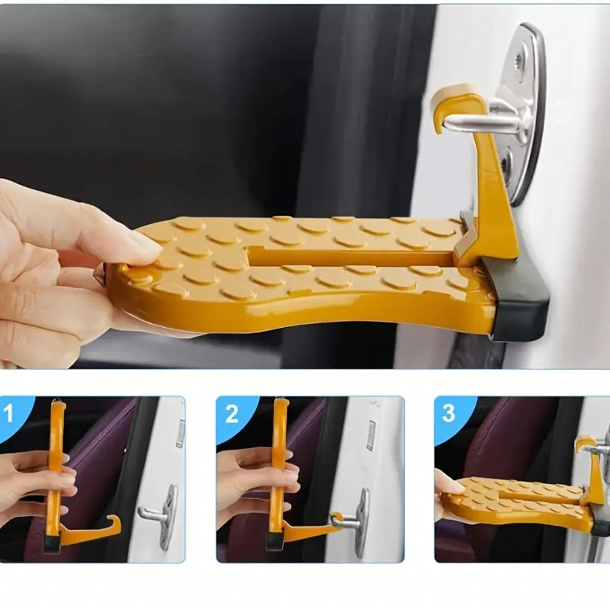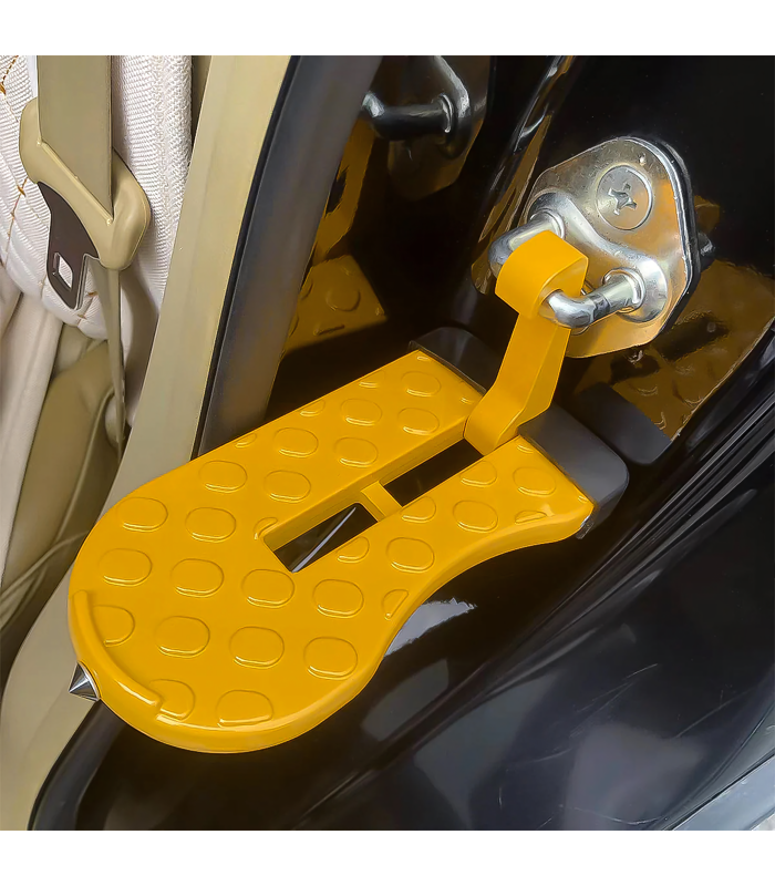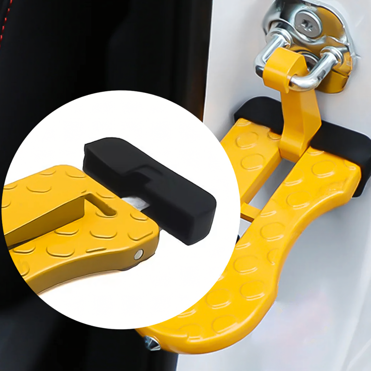 Auto durvju jumta bagāžas turētāju metāla platforma ir praktisks un izturīgs piederums, kas atvieglo piekļuvi transportlīdzekļa jumtam. Tas ir ideāli piemērots jumta kastēm, bagāžniekiem vai automašīnas mazgāšanai. Izgatavots no alumīnija, saliekams, viegls un neslīdošs, papildus tam kalpo kā avārijas āmurs.
