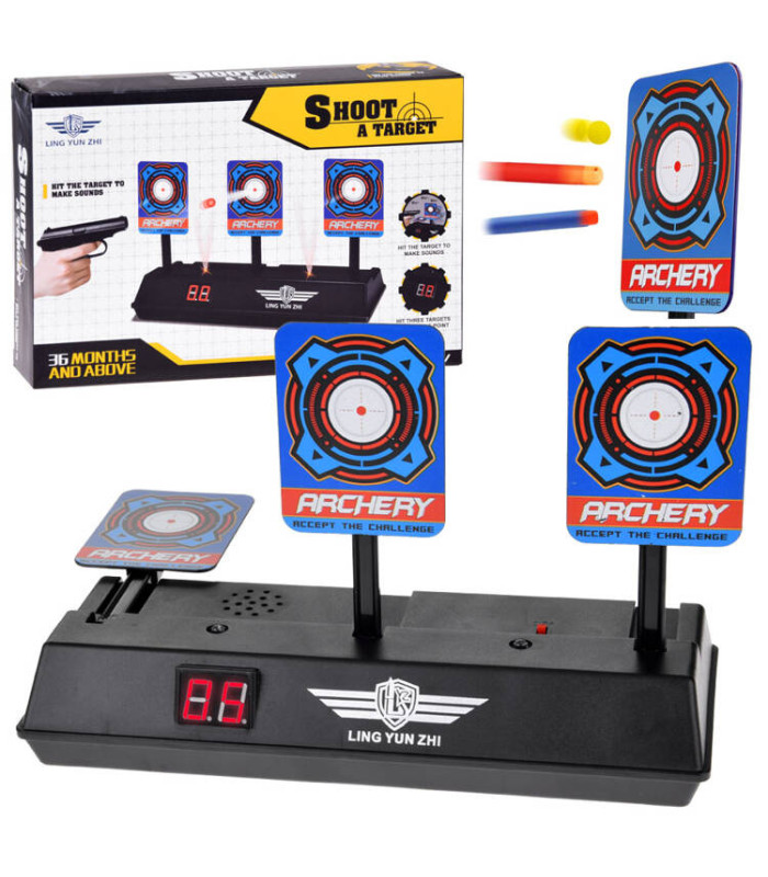 Interaktīvā automātiskā 3 punktu mērķis ir lieliska rotaļlieta, kas piedāvā iespēju trenēties šaušanas prasmēs, izmantojot, piemēram, Nerf tipa pistoles vai pistoles ar putu lodītēm. Visa rotaļlieta ir izgatavota no plastmasas un aprīkota ar skaņas un gaismas efektiem.
