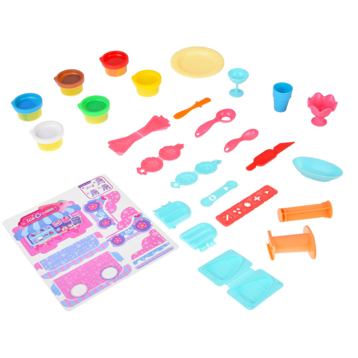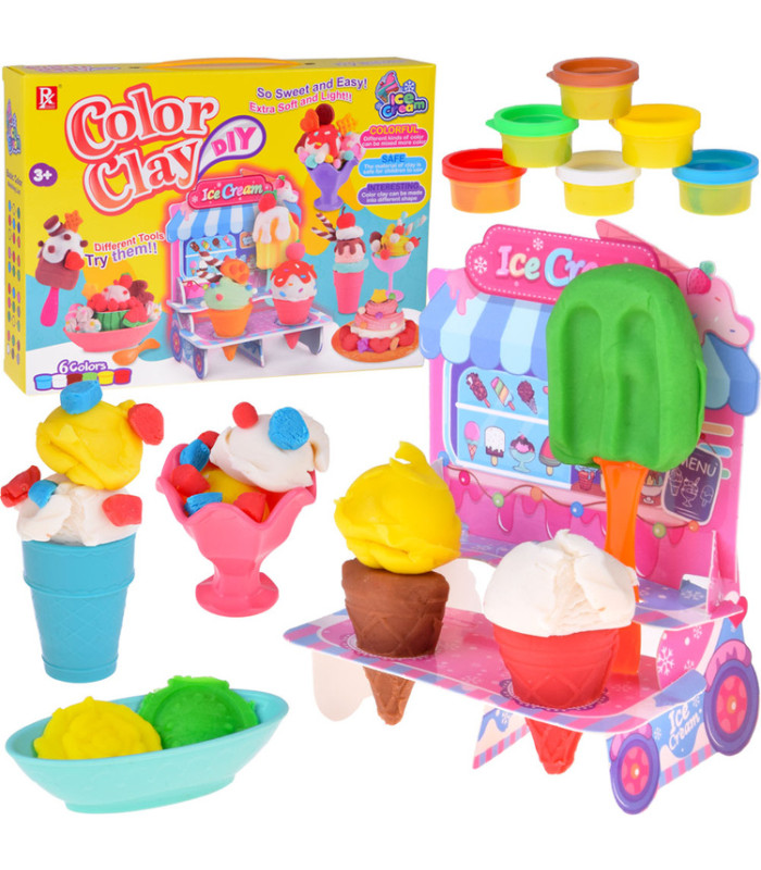 Izveido radošu desertu ar plastilīna saldējumu un piederumiem! Krāsainais radošais komplekts ir ideāls piedāvājums bērniem, kuri mīl rotaļāties un izlikties par dažādām lomām. Ar šo komplektu bērni var izlikties par saldējuma veikaliņa īpašniekiem, pasniegt krāsainus desertus un eksperimentēt ar savām idejām.