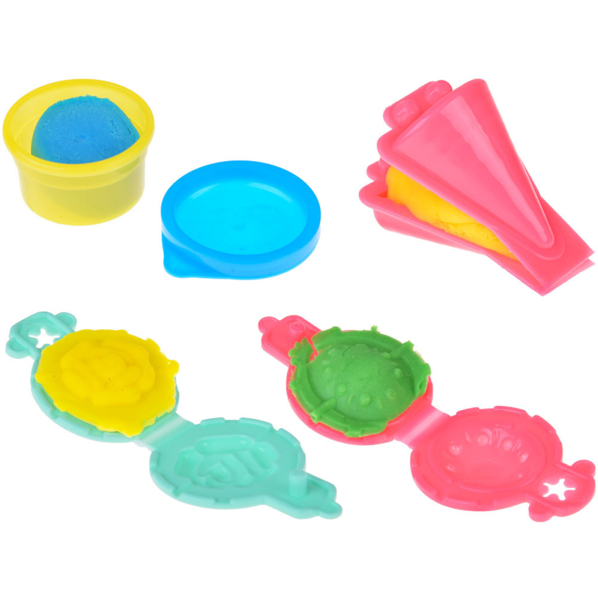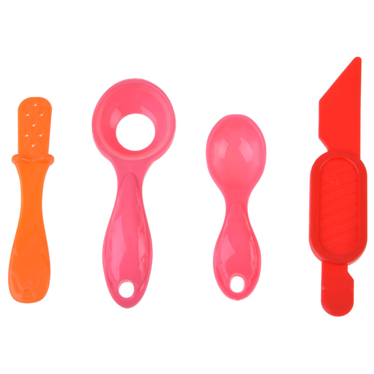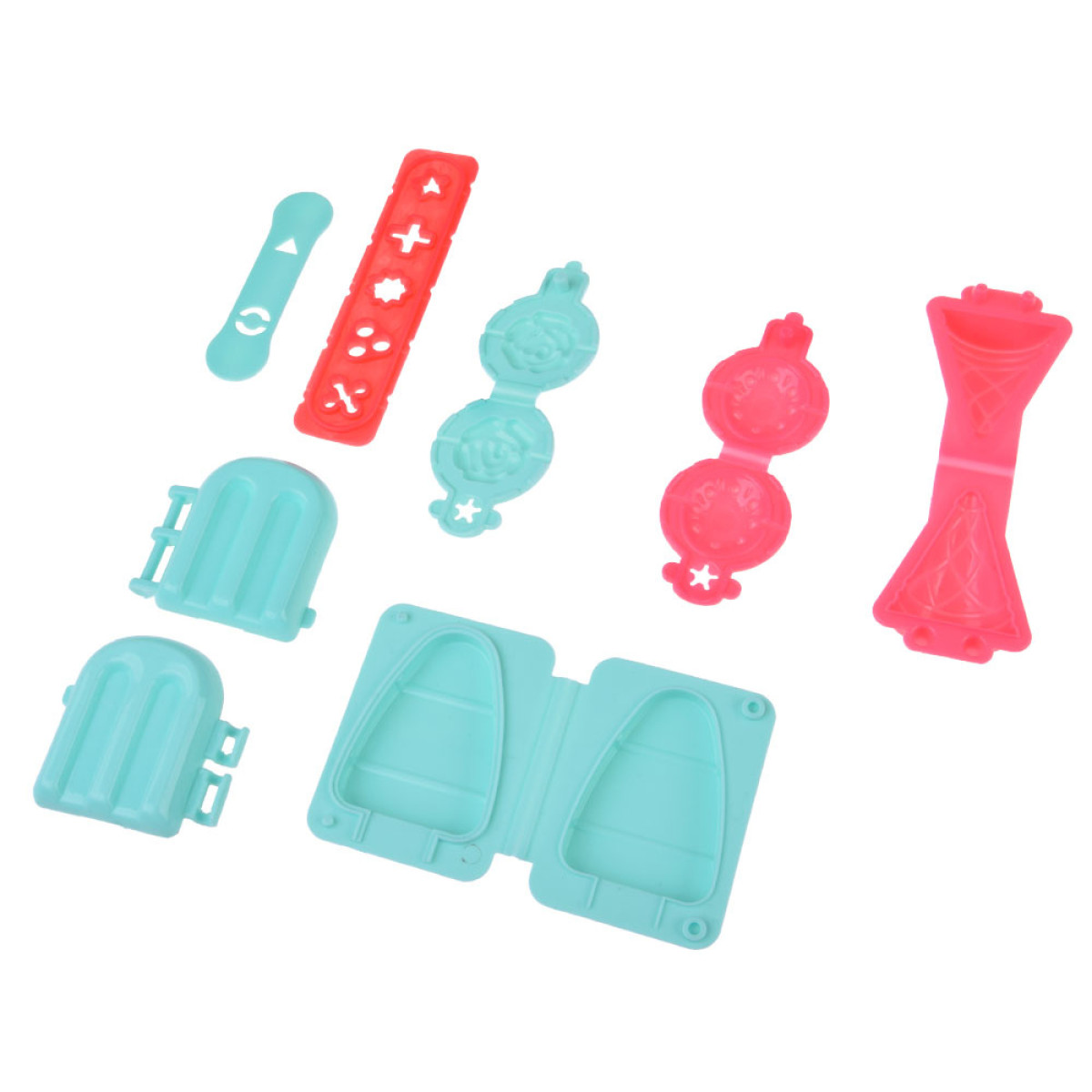 - Sešas dažādas krāsas plastilīna, kas ļauj veidot jebkuras formas un desertus.