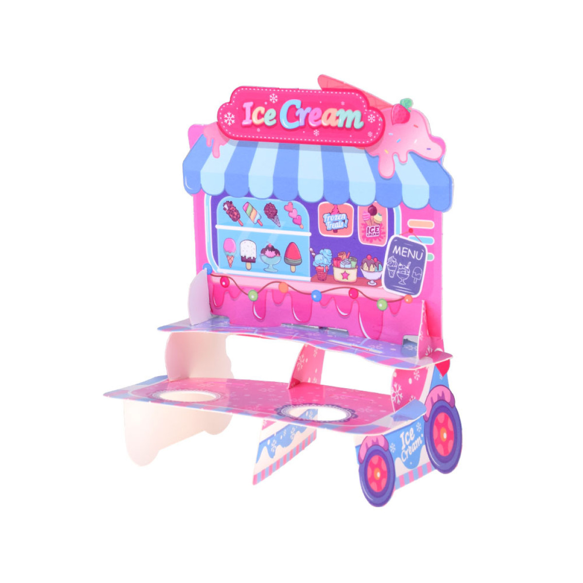 - Pašrocīgi saliekama saldējuma stends (papīra struktūra, kas imitē saldējuma veikaliņu).