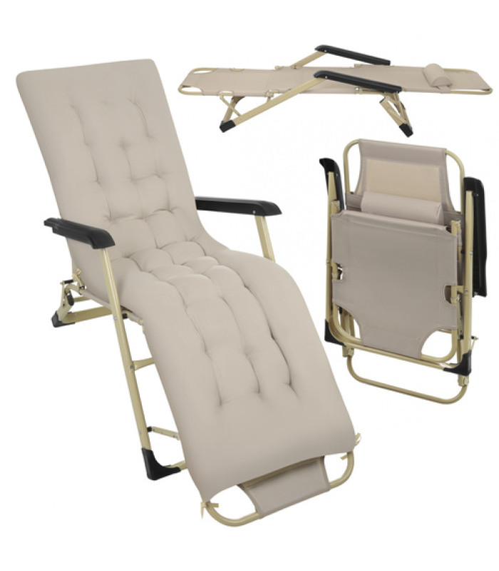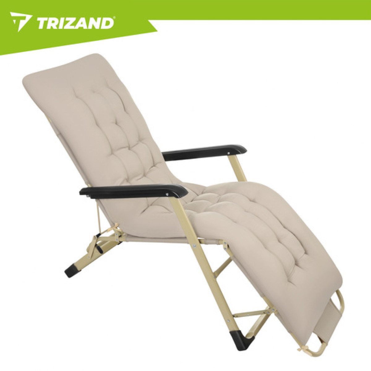 Vai vēlaties ērti atpūsties dārzā, terasē vai pludmalē - bez smagu mēbeļu un neērtu guļamkrēslu problēmām? Saliekamais šezlongs TRIZAND 3in1 piedāvā komfortablu sēdus, pusguļus vai guļus pozīciju, turklāt komplektā ir bieza spilvena un galvas spilvena.