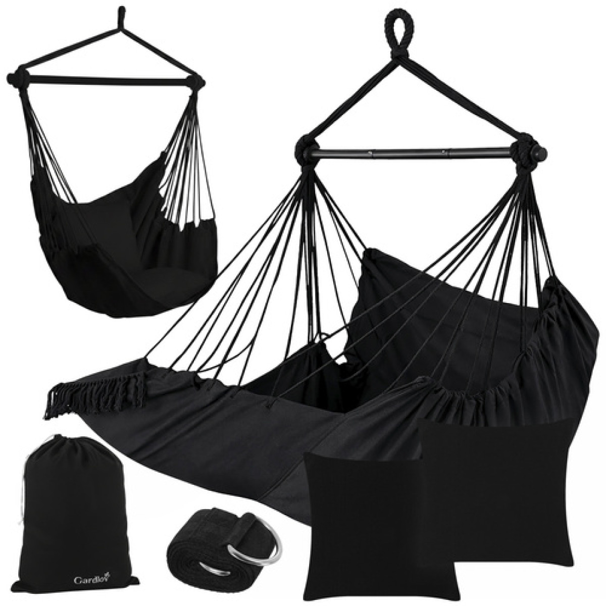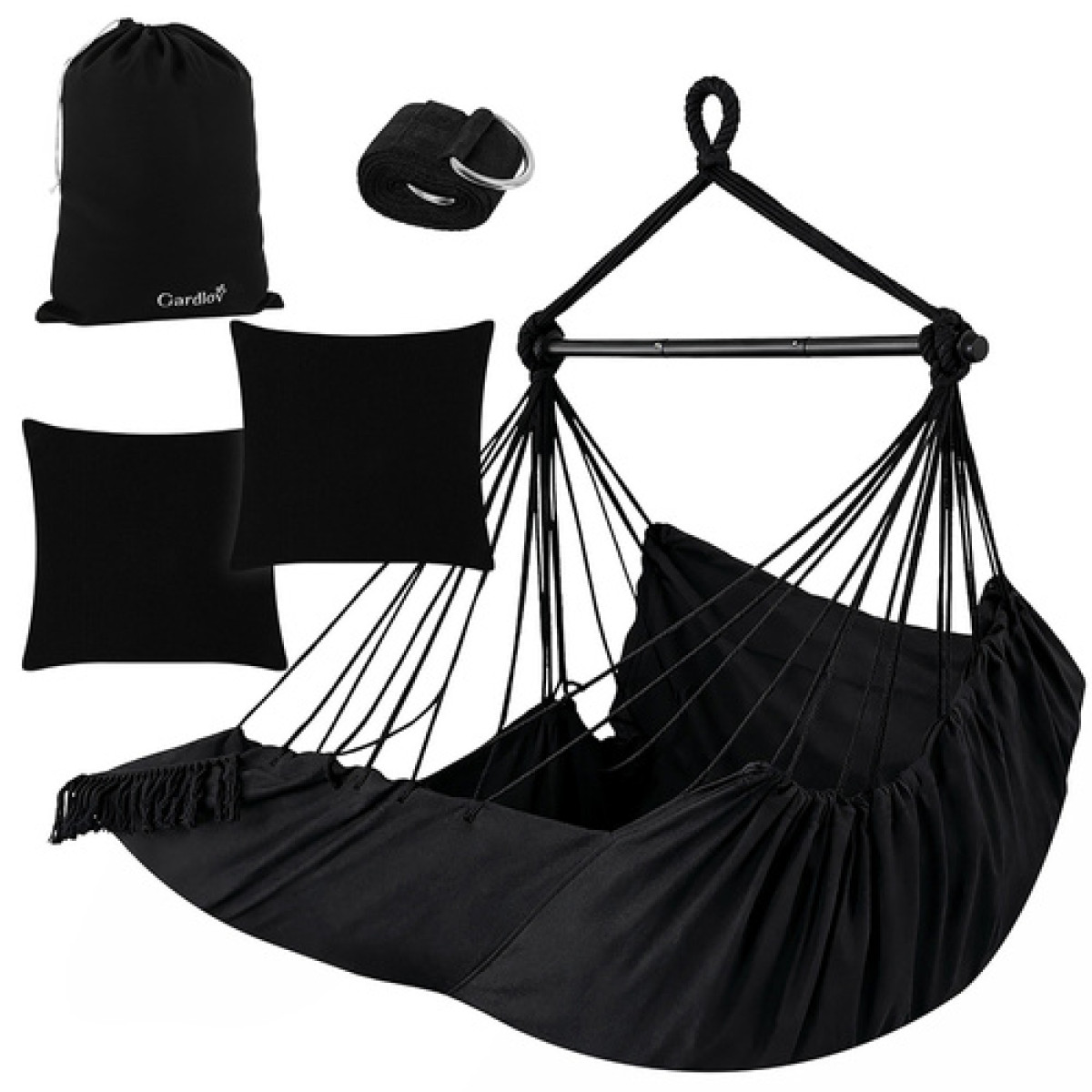 Brazīliešu pakaramais krēsls Gardlov ir liels, ērts dārza un balkona šūpuļtīkls, kas ātri pārvērtīs parastu stūri par mājīgu atpūtas zonu. Izturīgs kokvilnas audums, divi mīksti spilveni un stabils metāla stienis nodrošina komfortu un drošību lietošanā. Tas ir ideāla vieta atpūtai pēc darba, grāmatas lasīšanai vai atelpas brīdim dārzā, terasē vai viesistabā.