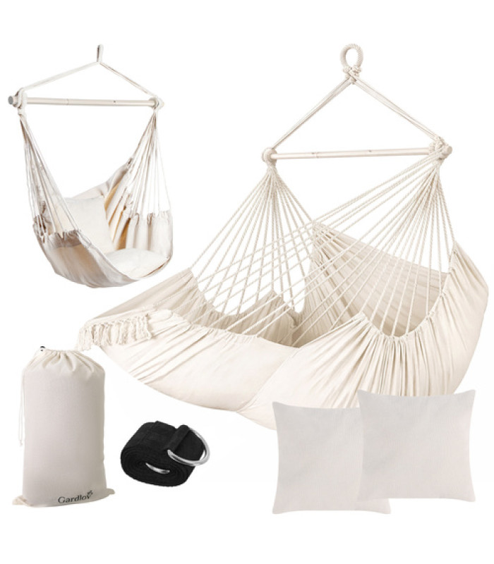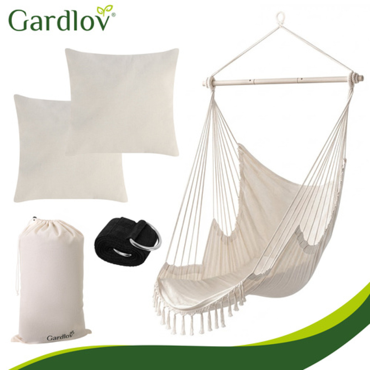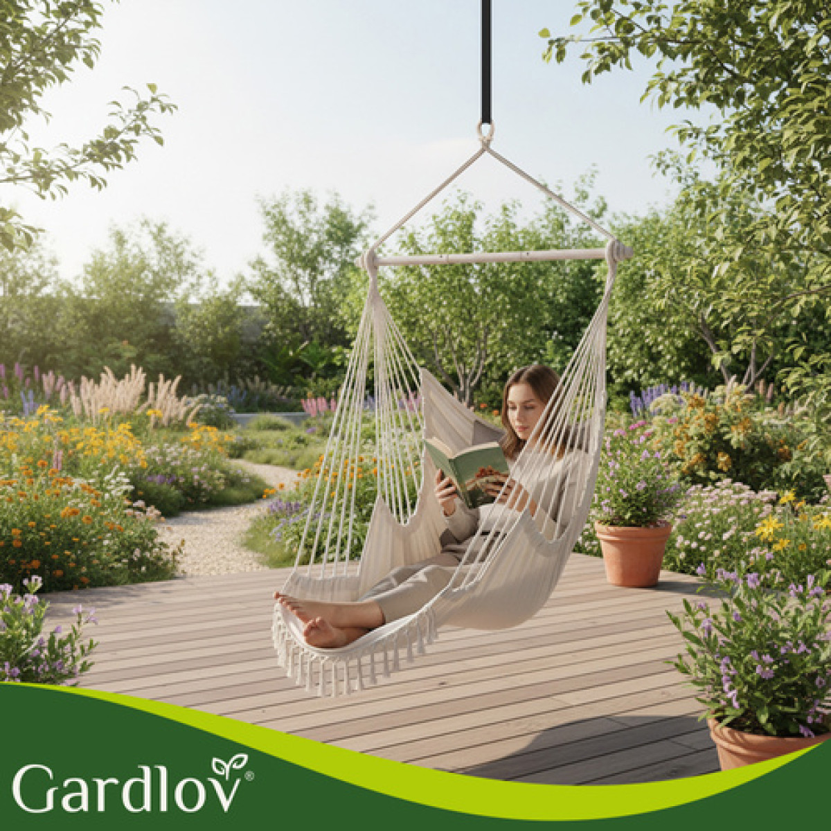Gardlov piekārtais krēsls ir liels un ērts dārza un balkona šūpuļtīkls, kas ātri pārveido parastu vietu omulīgā atpūtas zonā. Izgatavots no stipra kokvilnas auduma ar diviem mīkstiem spilveniem un stabilu metāla stieni, kas nodrošina komfortu un drošību. Ideāli piemērots atpūtai pēc darba, lasīšanai vai dārza relaksācijai.