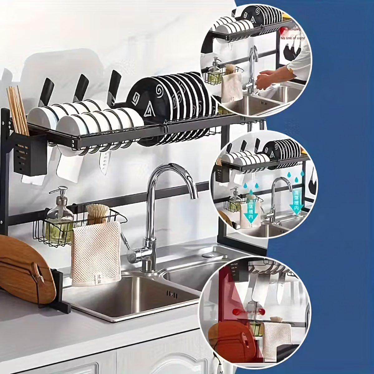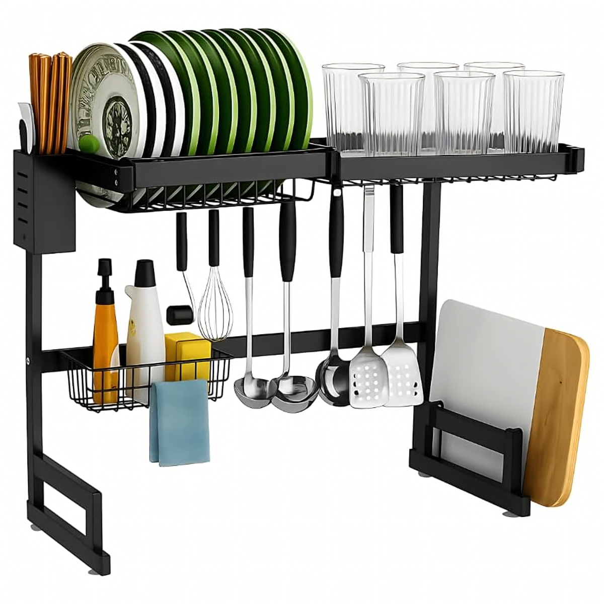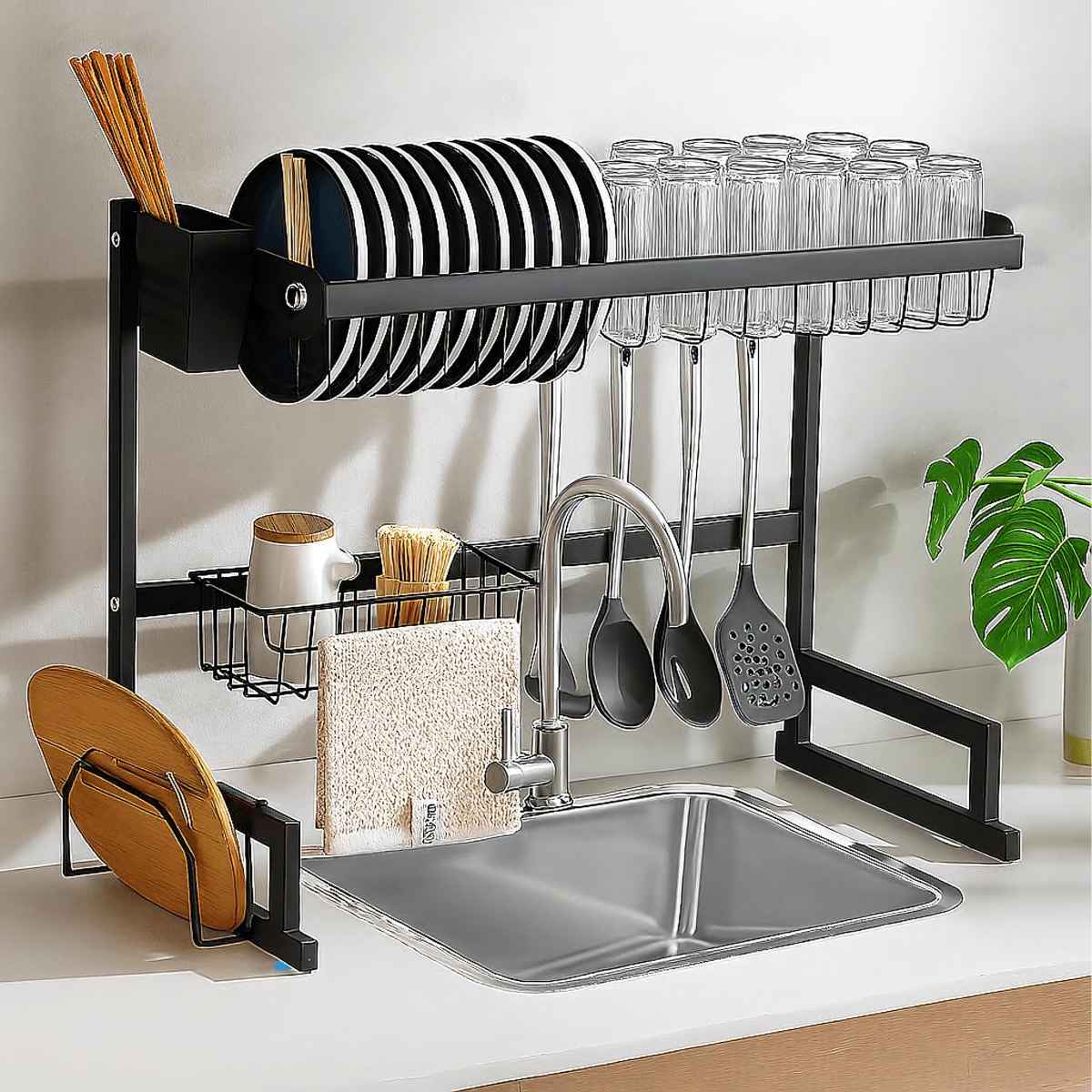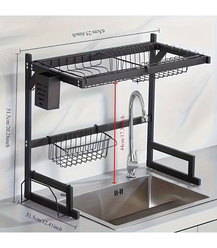 Divu līmeņu trauku žāvētājs ar turētāju dēlim un aksesuāriem ir ideāls risinājums jebkurai virtuvei. Pateicoties tērauda konstrukcijai ar pulverkrāsojumu, tas ir stabils, izturīgs un estētisks. Tilpums, modulārie turētāji un piesūcekņi nodrošina lietošanas ērtumu un drošību.