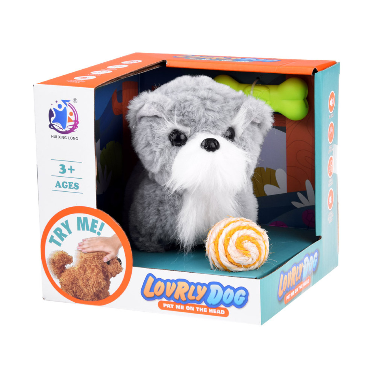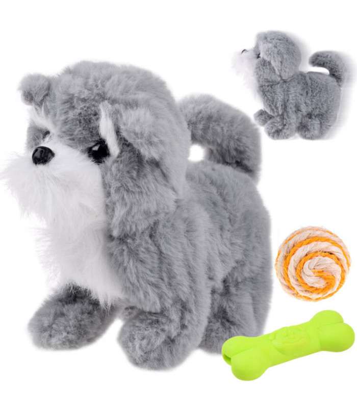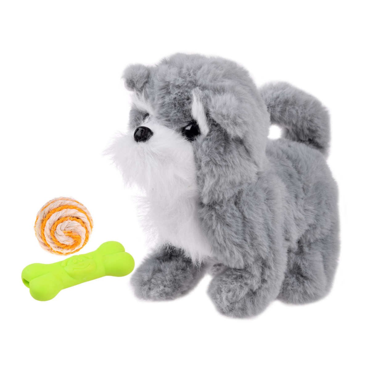 Pelēks burvīgs interaktīvs sunītis apburs katru bērnu un kļūs par labāko sirdsdraugu. Sunītim ir mīksts, pelēks kažoks un melnas, spīdīgas acis un plastmasas deguns. Rotaļlieta darbojas ar baterijām. Pēc to ievietošanas, sunītis sāks riet, skriet uz priekšu un atpakaļ, kustināt galvu, purniņu un asti. Turklāt sunītim ir mīksta, gumijas zaļa kauliņa un krāsaina bumbiņa, kas apvīta ar auklu.