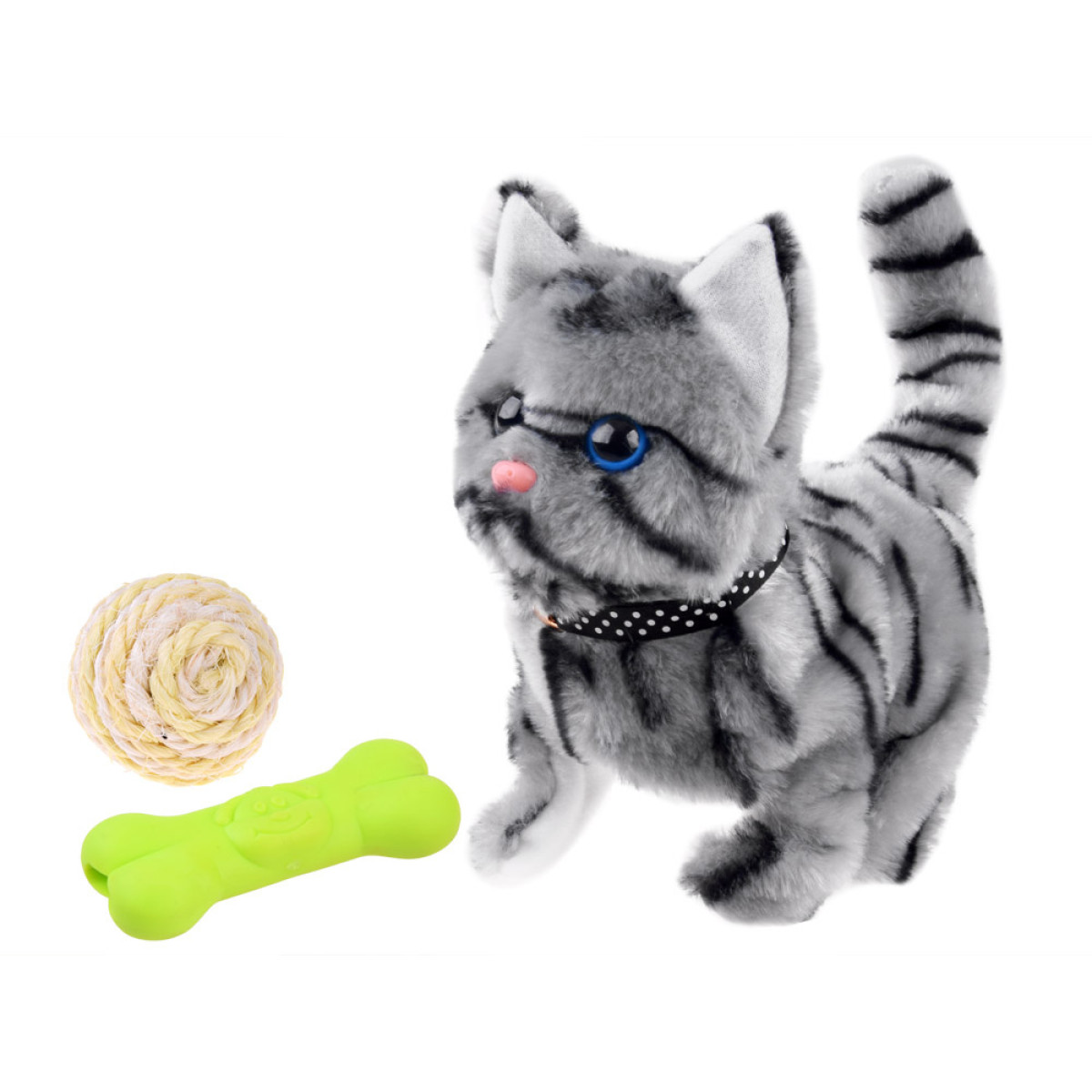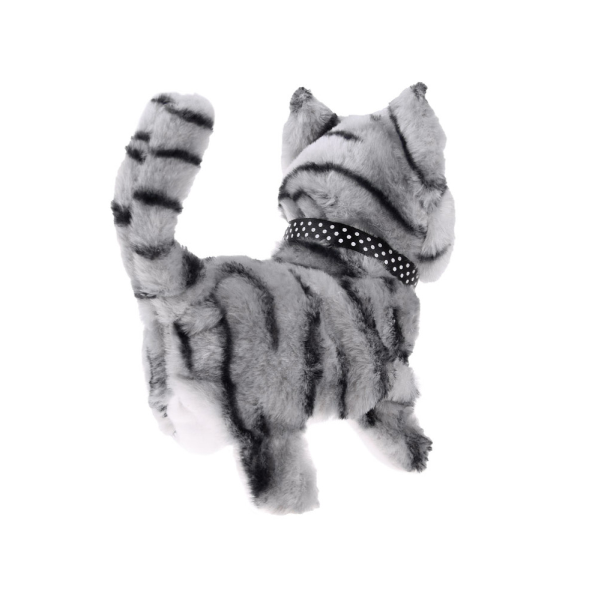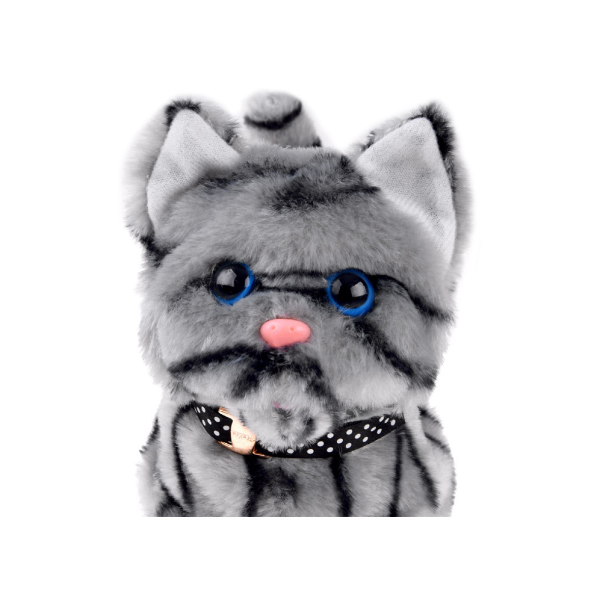 Pelēks interaktīvs kaķēns, kas aizraus jebkuru bērnu un kļūs par labāko pūkainu draugu. Šis kaķēns ar mīkstu pelēku kažokādu melnās svītrās, rozā deguntiņu, zilām acīm un melnu apkakli ar baltu punktiņu un zelta rotājumu, darbojas ar baterijām. Pēc to uzstādīšanas kaķēns sāk murrāt, staigāt uz priekšu un atpakaļ, kustina galvu, purniņu un asti. Papildus nāk ar mīkstu, gumijotu, zaļu kubu un krāsainu bumbiņu, kas aptīta ar auklu.