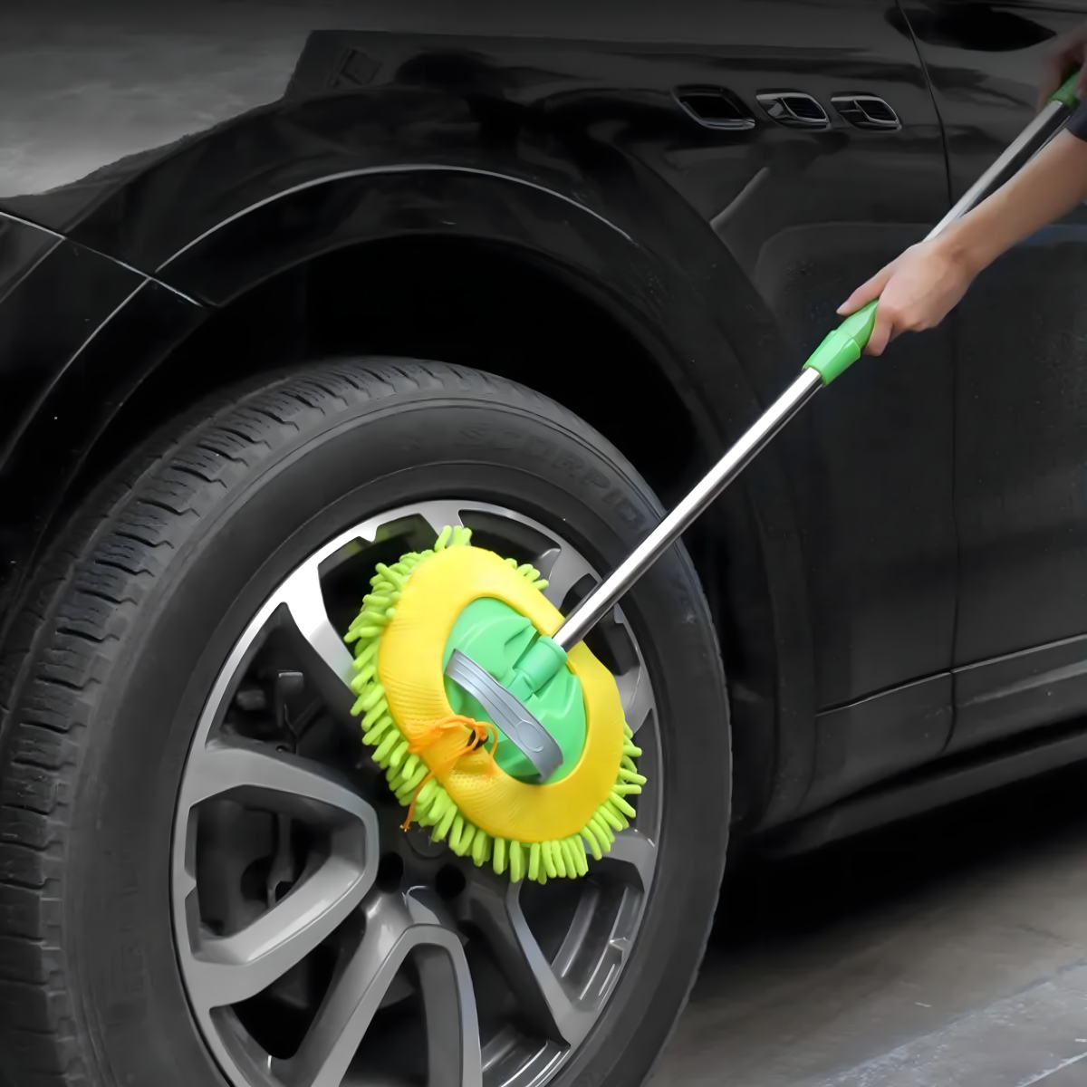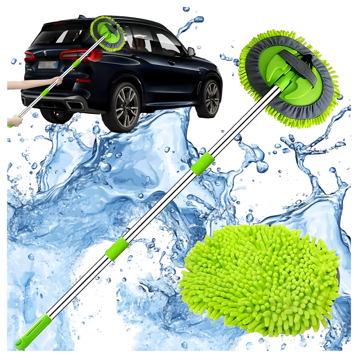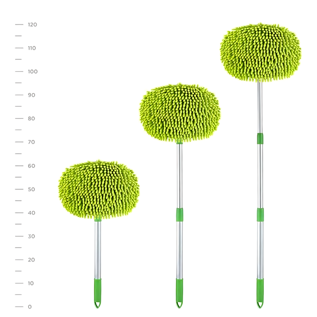 Viegls un izturīgs rīks ar šenila mikrošķiedru, kas neskrāpē virsmas. Regulējams rokturis līdz 1,1 m, 180° rotējoša galva, neslīdošs rokturis un iespēja izmantot kā cimdu. Ideāli piemērots automašīnai, mājai un dārzam!