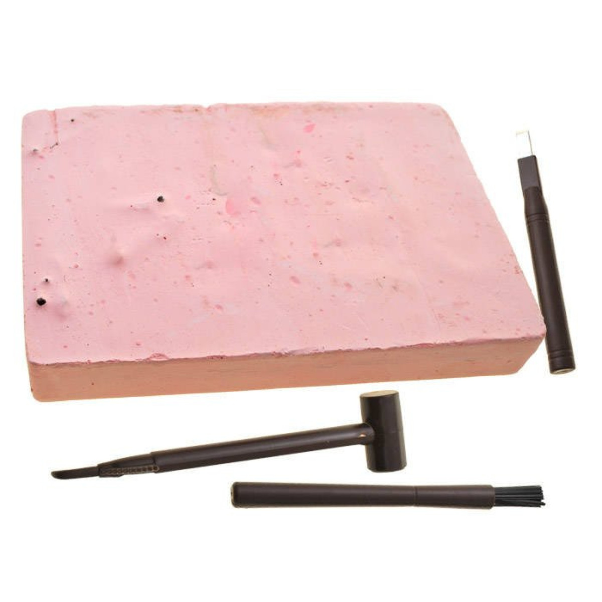 Aizraujošs komplekts mazajiem paleontologiem, kas veicina iztēli un zināšanas par aizvēsturiskajiem dzīvniekiem. Jūs varēsiet izrakt T-Rex dinozaura skeletu no ģipša bloka, kurā tas ir paslēpts, un izmantot komplektā iekļautos rīkus, lai to atklātu. Kad kauli būs iztīrīti, tos var savienot, rezultātā iegūstot iespaidīgu skeletu, kuru var novietot uz pamatnes kā eksponātu uz galda vai plaukta.