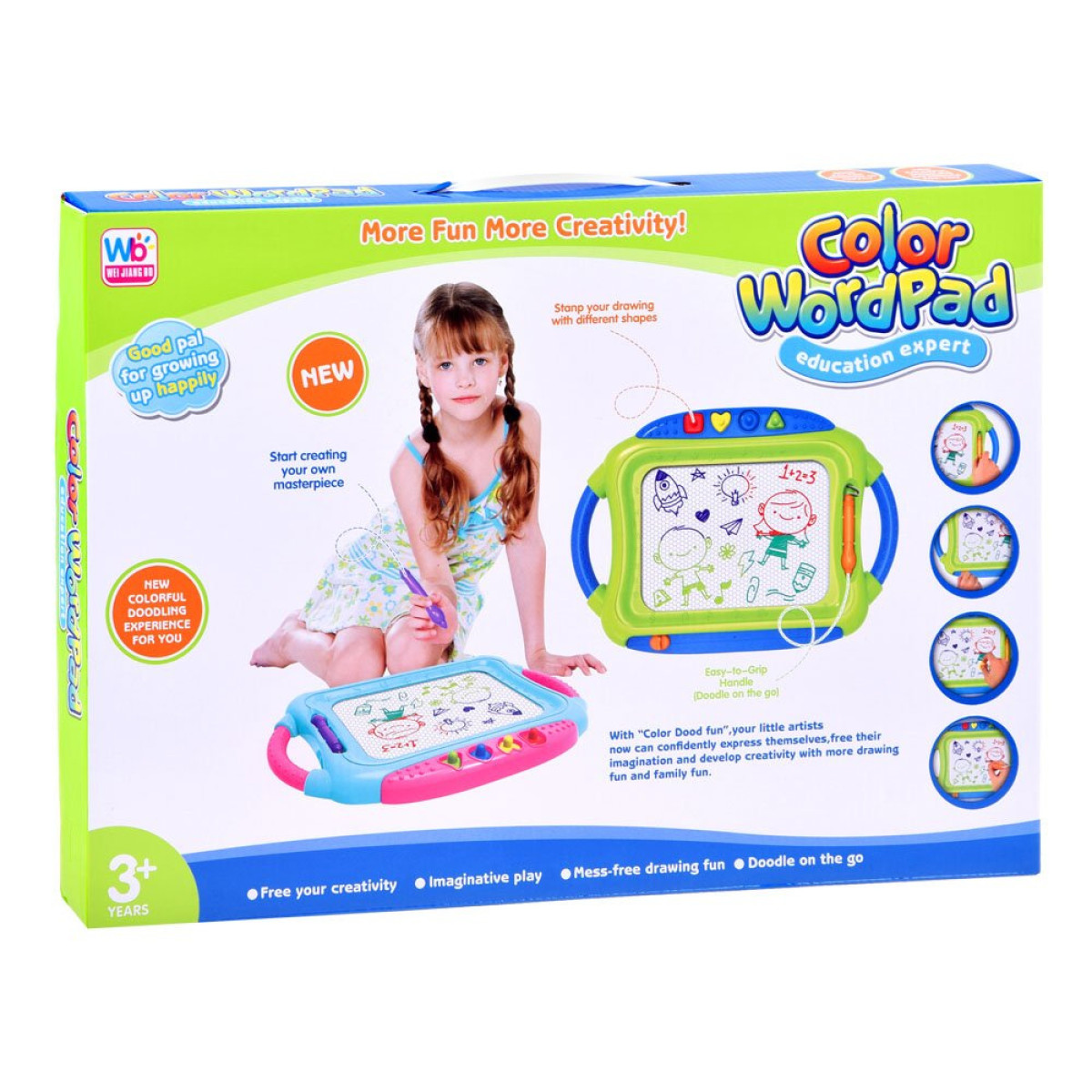 Tāfeles fons ir daudzkrāsains un mainās atkarībā no rakstīšanas vai krāsošanas vietas. Spiedogi arī palīdzēs krāsot. Ja bērnam zīmējums apnīk vai nepatīk, to var vienkārši nodzēst ar pārbīdāmo dzēšamo. Spēlēšanās ar dzēšamo tāfeli būs lieliska nodarbe garlaicīgiem vakariem. Uz tāfeles var zīmēt, rakstīt ar zīmuli vai izdrukāt rakstus ar spiedogiem. Spiedogi ģeometrisko figūru formā ļaus padarīt zīmējumus interesantākus. Radošums un izdomas bagātība ļaus veidot dažādas formas un tēlus.