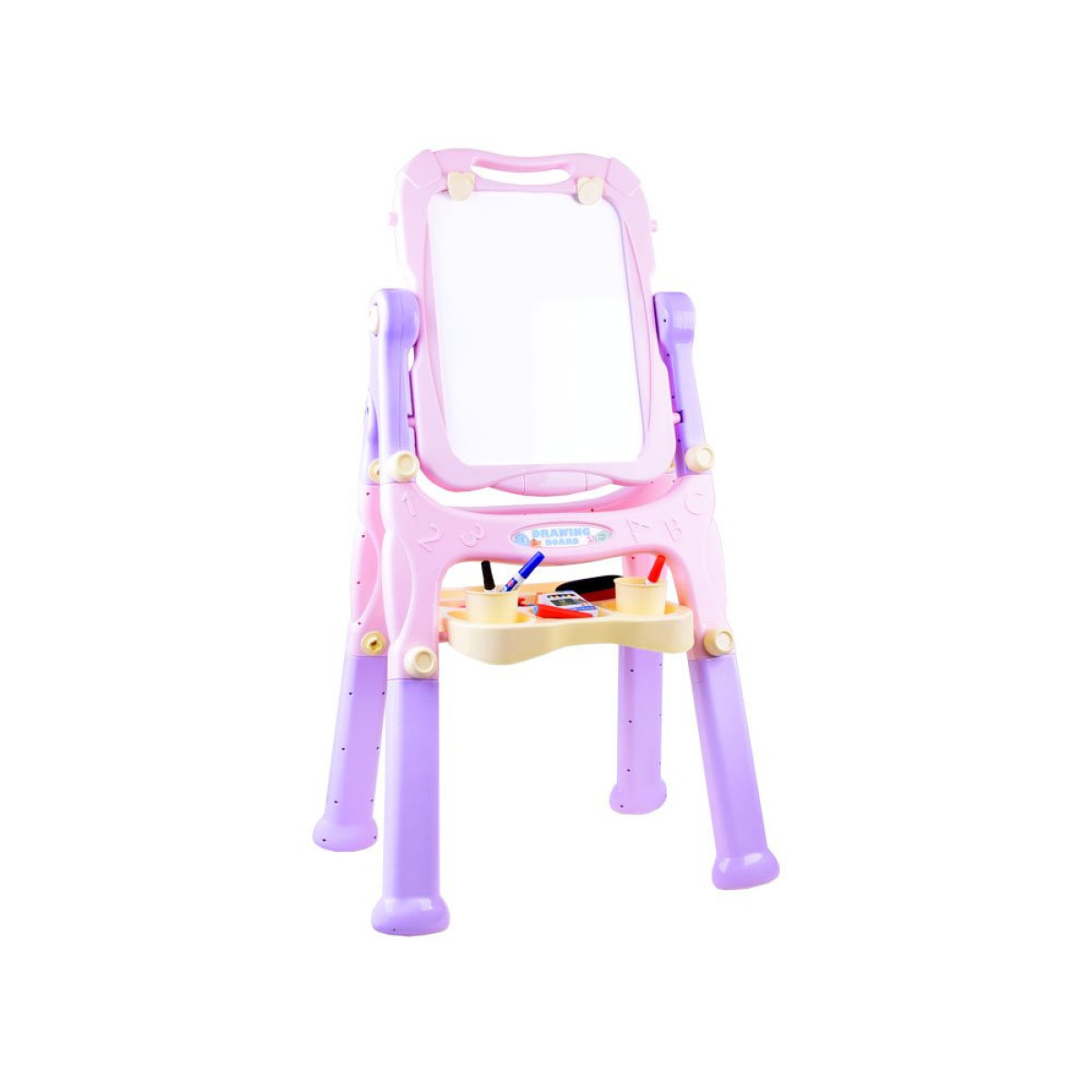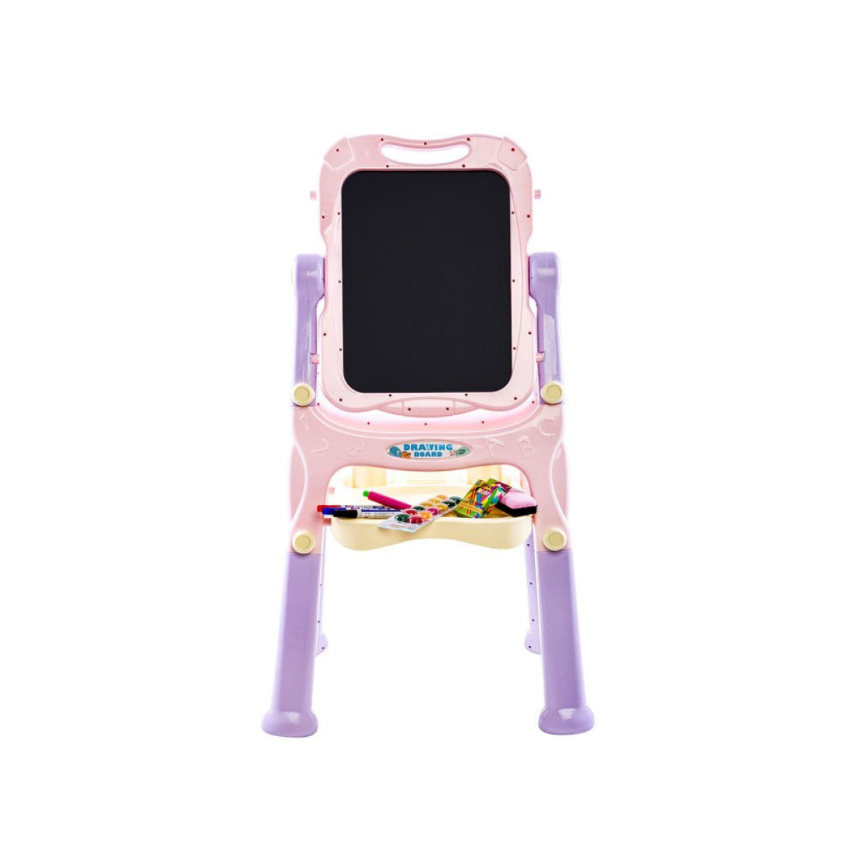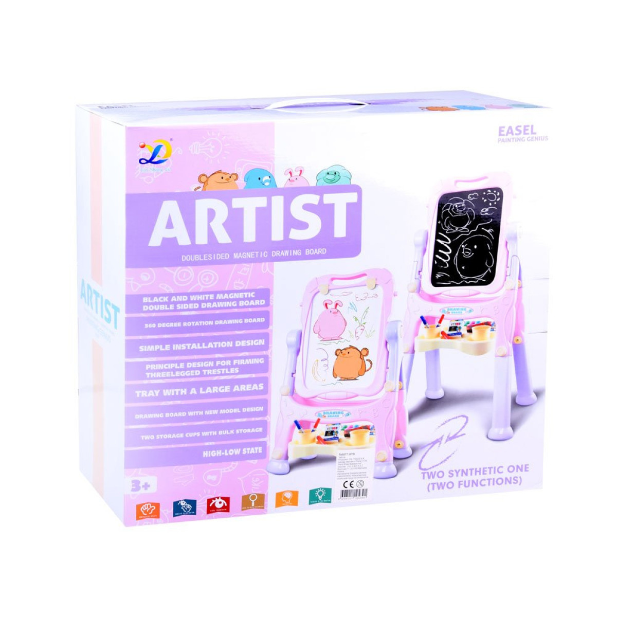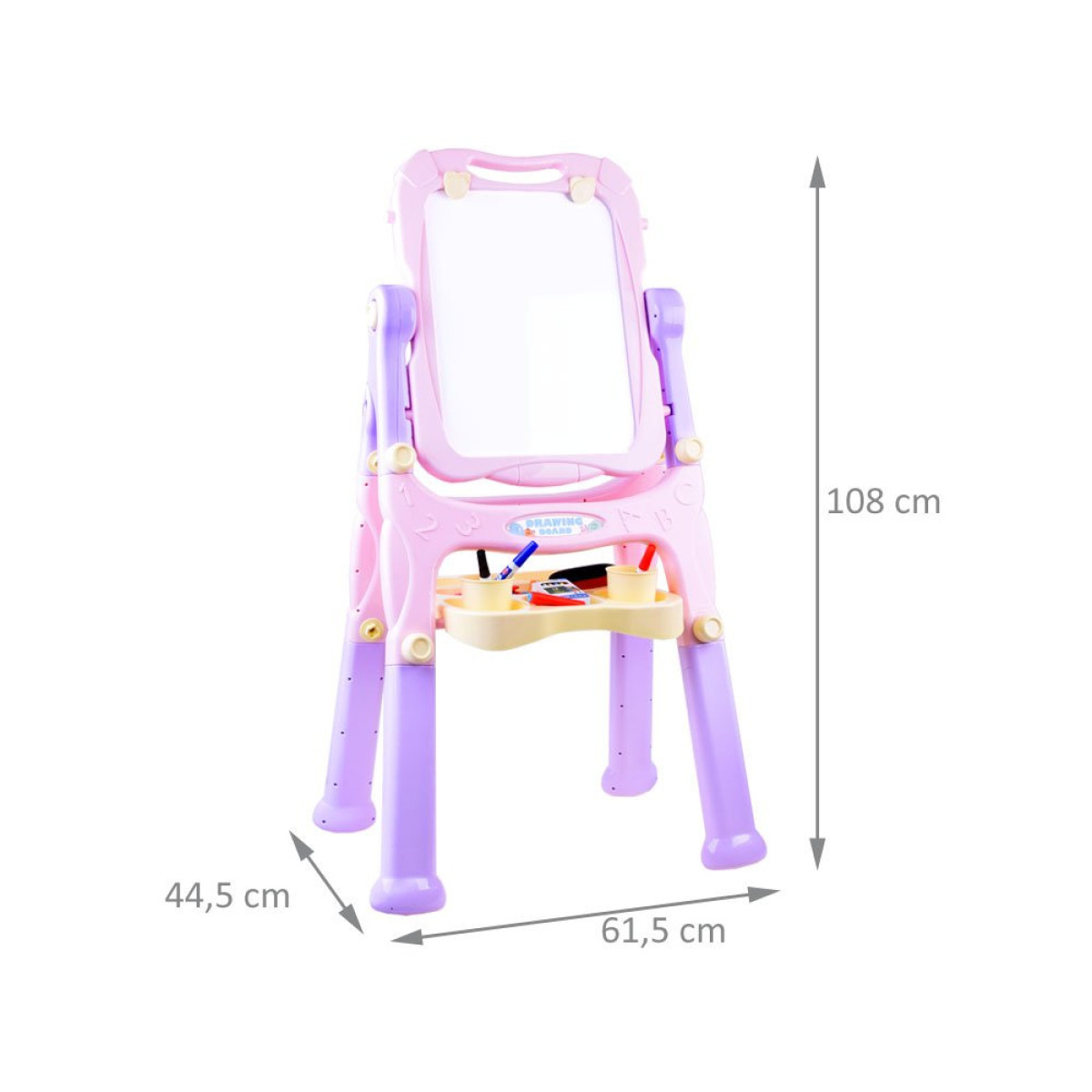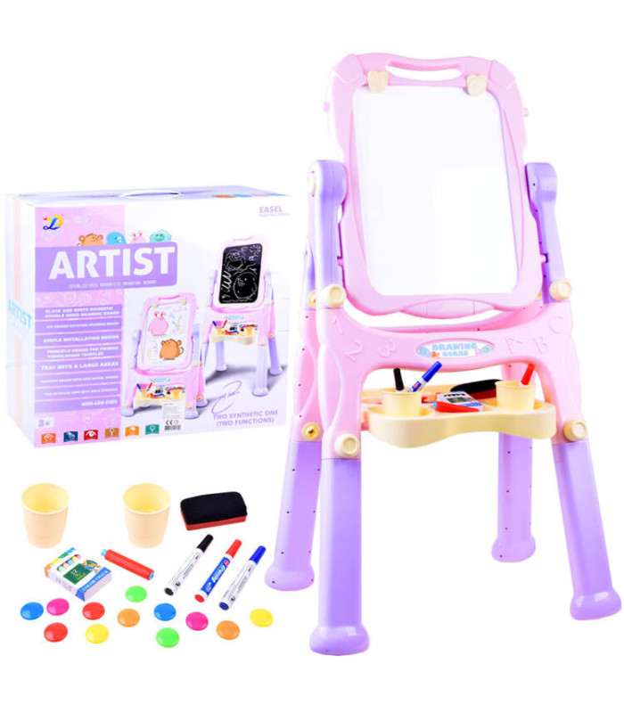 Magnētiskā tāfele TA0077R ir lieliska izvēle jebkurai bērnu istabai. Tāfele ir izgatavota no plastmasas pasteļkrāsās un nodrošina divpusēju virsmu zīmēšanai. Viena puse ir melna, paredzēta rakstīšanai ar krītu, bet otra ir magnētiska, piemērota magnētu piesaistīšanai, rakstīšanai ar sausās tīrīšanas flomasteriem vai papīra lapu piestiprināšanai zīmējumu veidošanai. Tāfelei ir plaukts zīmuļiem, krāsām un citiem zīmēšanas piederumiem.