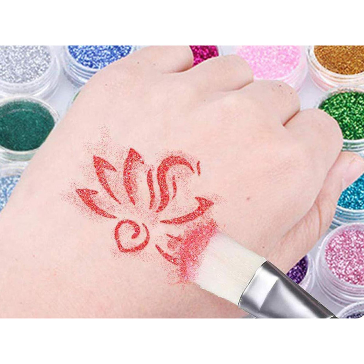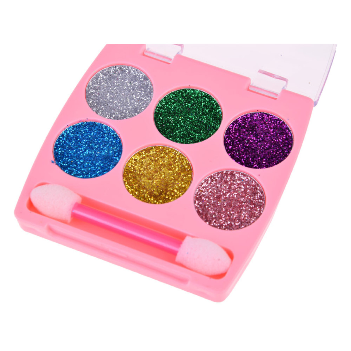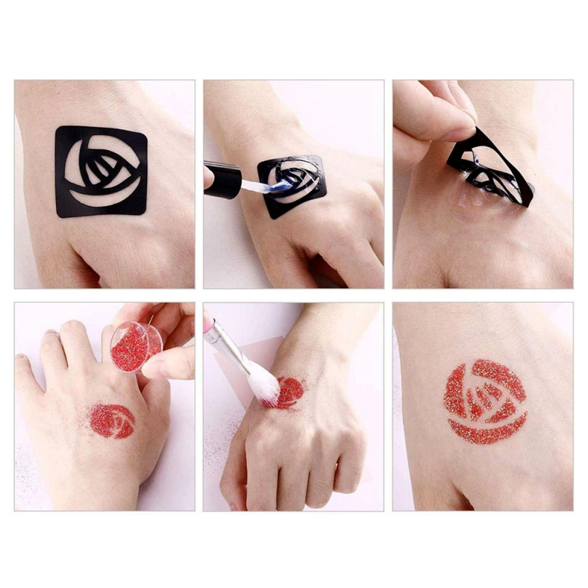 Glitter tetovējumi ir katras vasaras hits. Šis lieliskais komplekts palīdzēs izveidot modernus glitter tetovējumus. Komplektā ietilpst 120 dažāda izmēra šabloni, 24 burkas ar skaisti mirdzošiem glitter pulveriem un 2 pudeles līmes, kas pietiks vairākām tetovējumiem. Pievienotie glitter acu ēnas un otas komplekts palīdzēs izveidot fantastisku stilu. Glitter tetovējumi ir viegli mazgājami un, kas ir vissvarīgākais, droši bērnu maigai ādai.