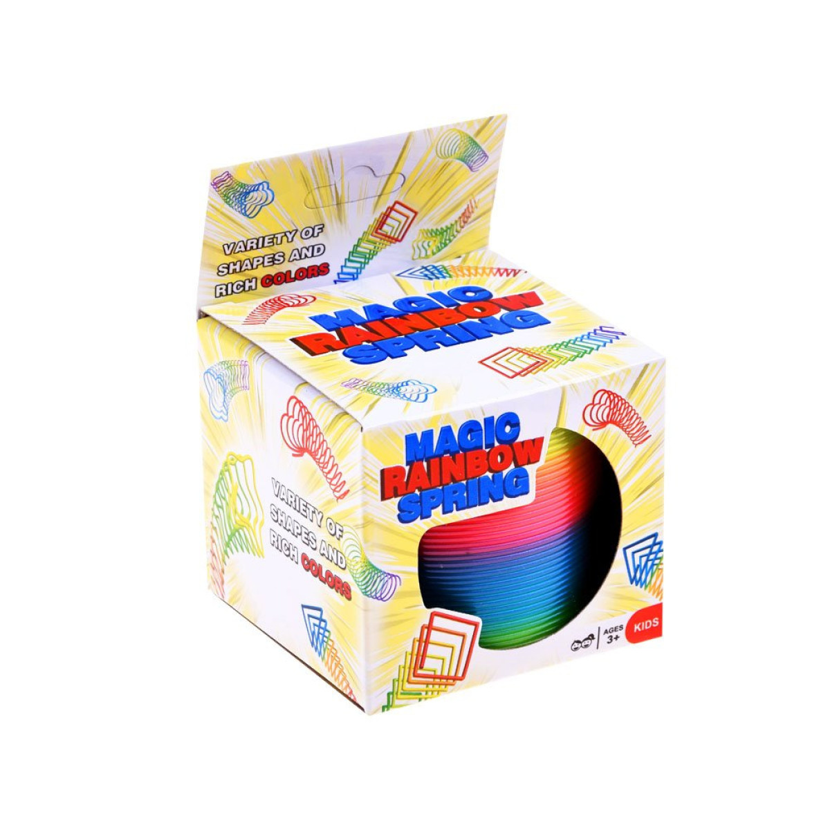 Šī spirālveida rotaļlieta ir elastīga un krāsaina, ar aptuvenu diametru 7,5 cm un augstumu 6,5 cm. Tā nodrošina daudz prieka spēlēs laikā.