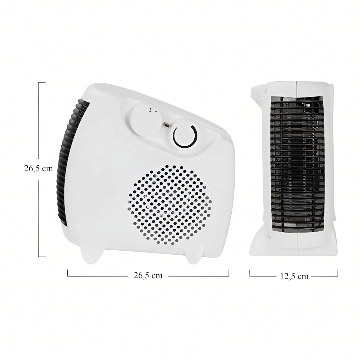 Pārnēsājamais termoventilators 600W ir kompakta un efektīva ierīce, kas ātri sasildīs jebkuru telpu. Tas var darboties gan vertikāli, gan horizontāli, savukārt iebūvētais termostats un aizsardzība pret pārkaršanu nodrošina drošu lietošanu. Ideāli piemērots mājai, birojam, vasarnīcai vai dārzam – tas noderēs visu gadu, jo siltākās dienās darbojas arī kā ventilators.