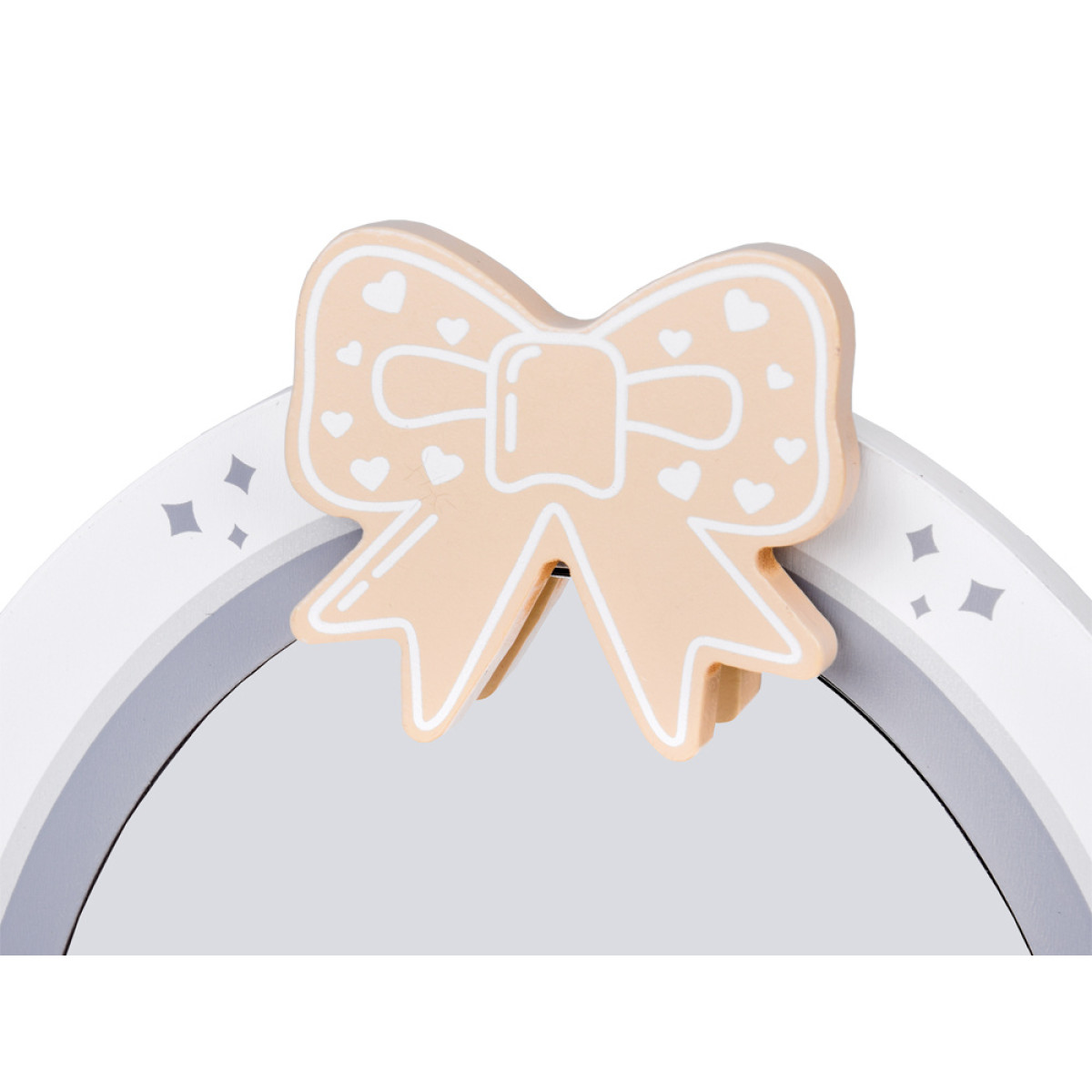 privāts tualetes galdiņš ir daudzu meiteņu sapnis. Tā ir vieta, kur glabāt mīļākos sīkumus, atdarināt mammu, spēlējoties ar grimu, un lieliski pavadīt laiku. Šis koka tualetes galdiņš ir kompakts, tāpēc tam atradīsies vieta arī mazākā istabā. To var ērti novietot uz rakstāmgalda vai naktsgaldiņa.