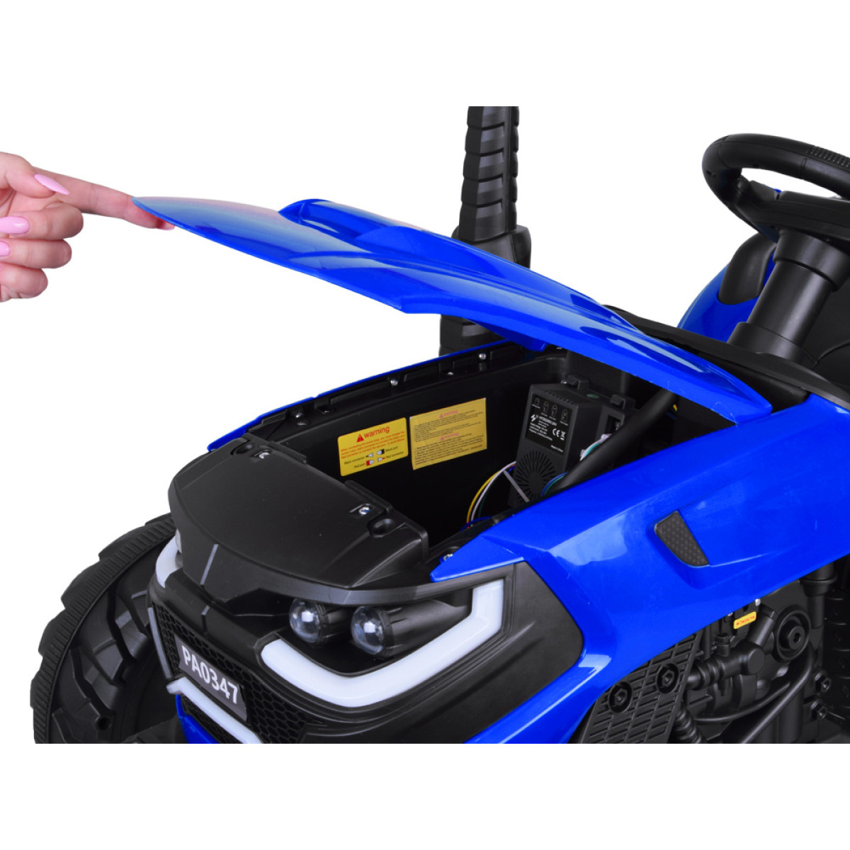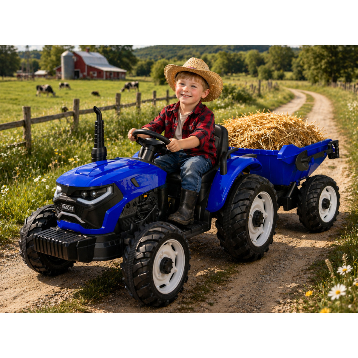 jaudīga piedziņa un ērta braukšana nodrošina patīkamu lietošanu ikdienā. Traktors ir aprīkots ar 2 motoriem, katrs 200 W, un to darbina 24 V akumulators. Transportlīdzeklis var sasniegt ātrumu līdz 6 km/h, kas ir piemērots bērniem. lēnā starta funkcija nodrošina vienmērīgu uzsākšanu bez rāvieniem, tādējādi uzlabojot komfortu un drošību.