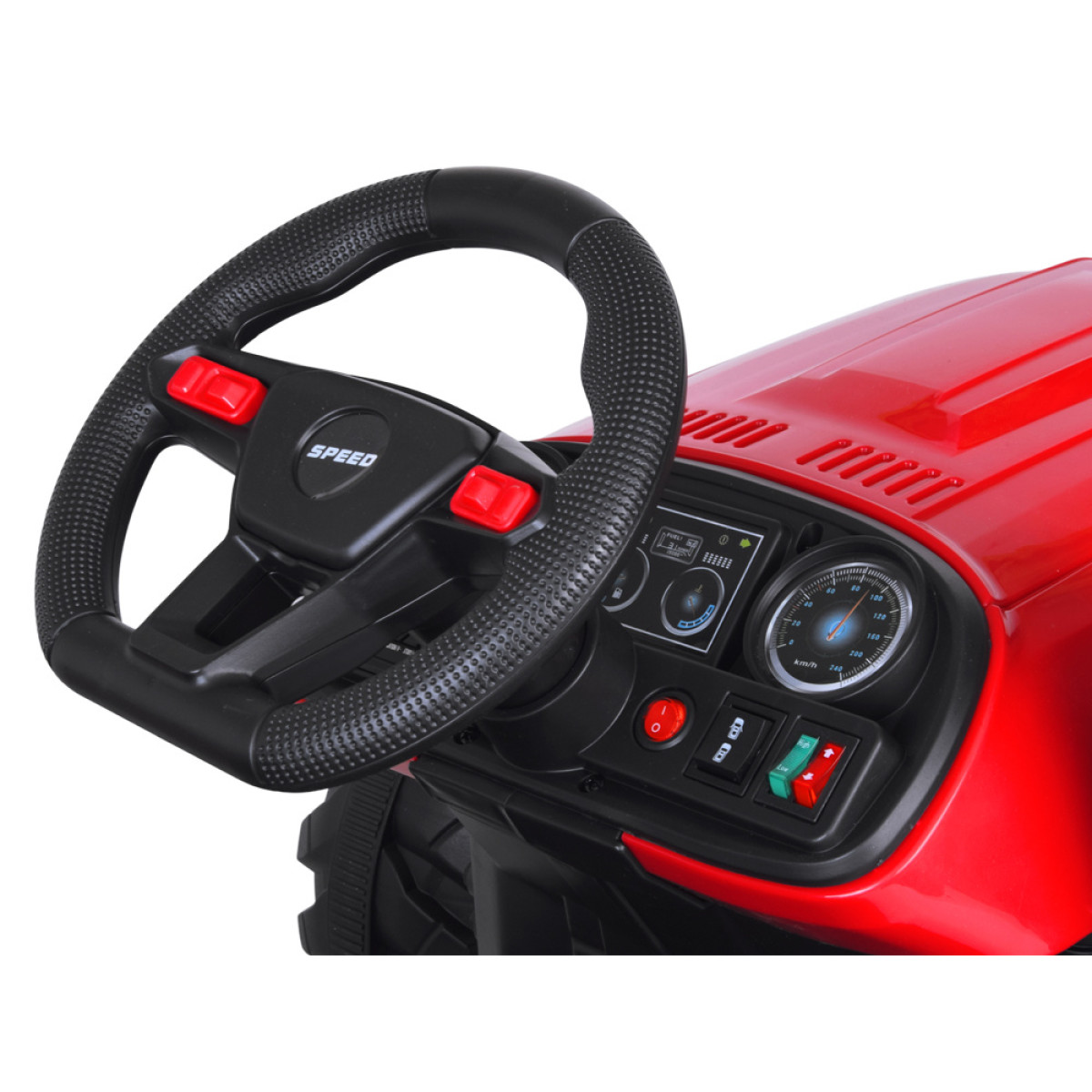 Traktors ir aprīkots ar 2 motoriem, katrs 200 w, un to darbina 24 v akumulators. Tas nodrošina vienmērīgu braukšanu ar ātrumu līdz 6 km/h, kas ir piemērots bērniem.