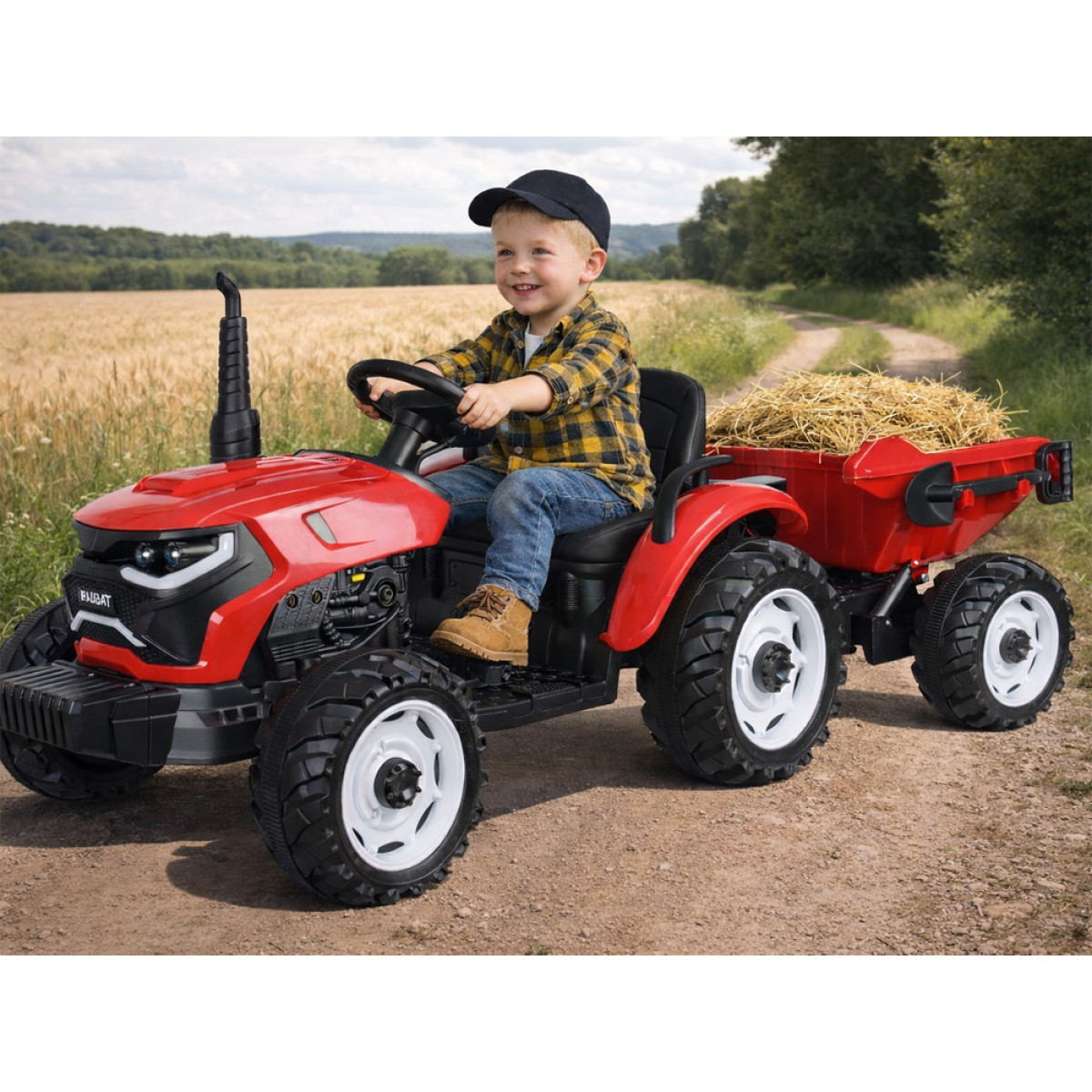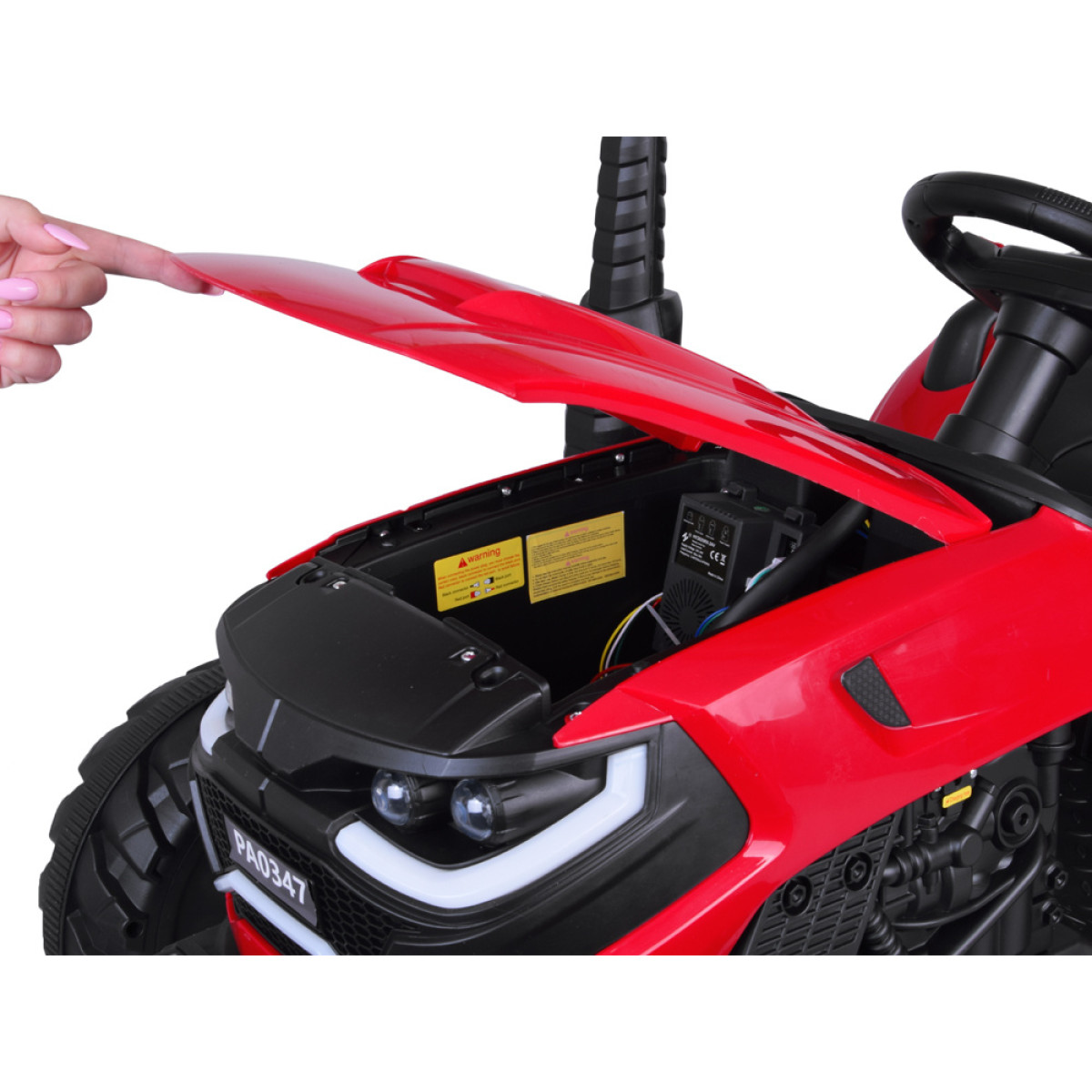 Šis bērnu traktors ar akumulatoru apvieno braukšanas prieku ar praktiskām iespējām. Modelim ir automātiska, kustīga paceļamā kravas kaste, kas ļauj ne tikai pārvadāt kravu, bet arī to patstāvīgi izbērt. Tā ir īpaši noderīga rotaļām pagalmā, dārzā vai smilšu kastē.