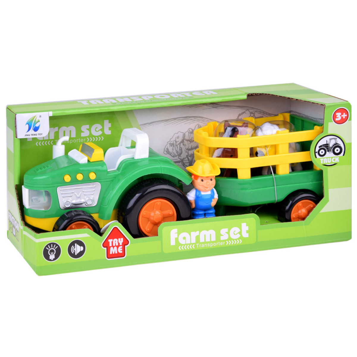 Traktors ar piekabi, fermeri un dzīvniekiem – Ideāla spēle saimniecībā!