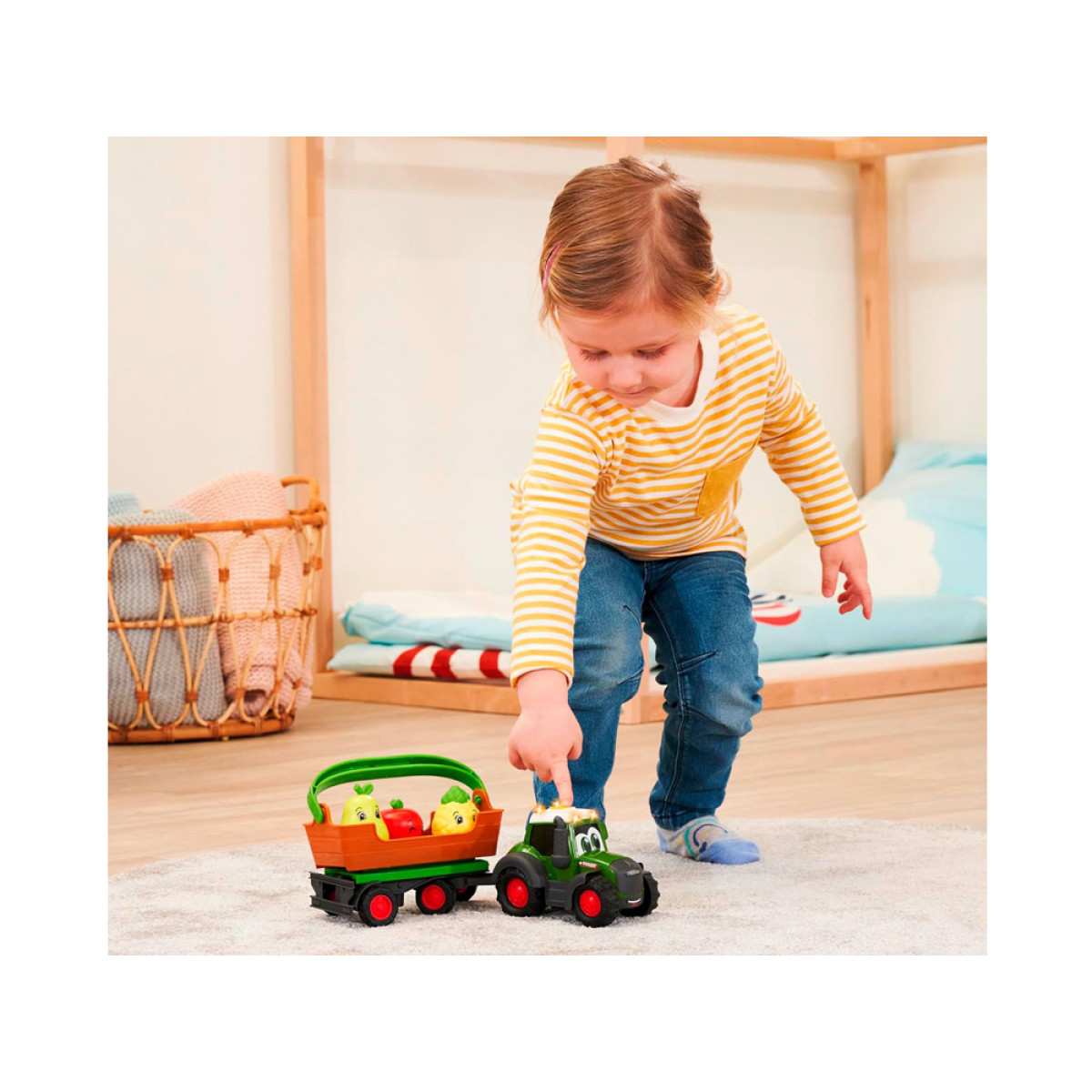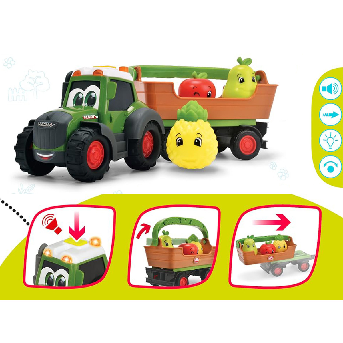 - Draudzīgs, pasakains izskats – Traktoram un augļiem ir lielas acis un smaidi, kas piešķir rotaļlietai draudzīgu, pasakainu izskatu, mudinot bērnu uz spēlēšanos un mijiedarbību.