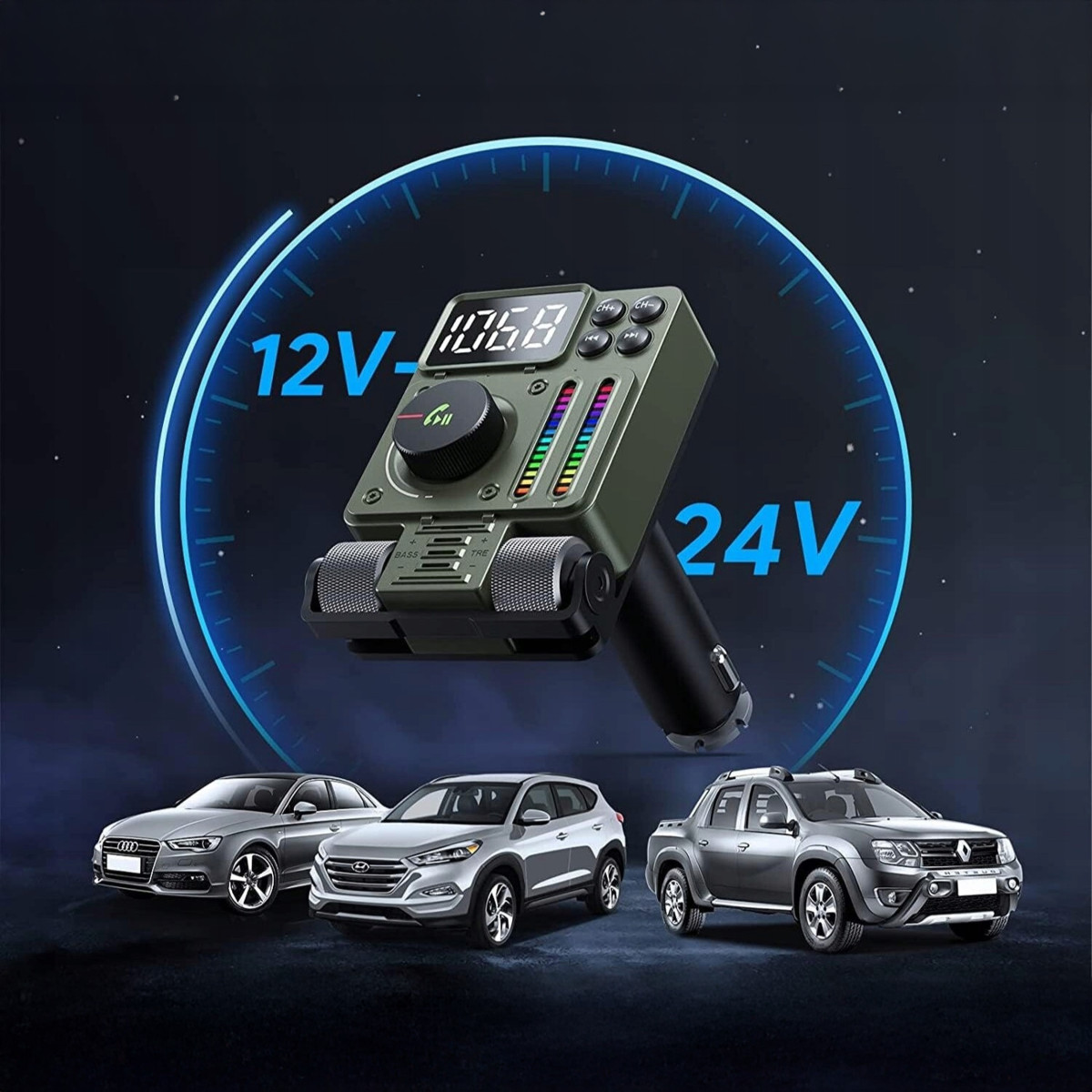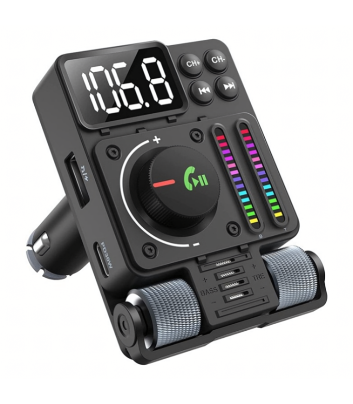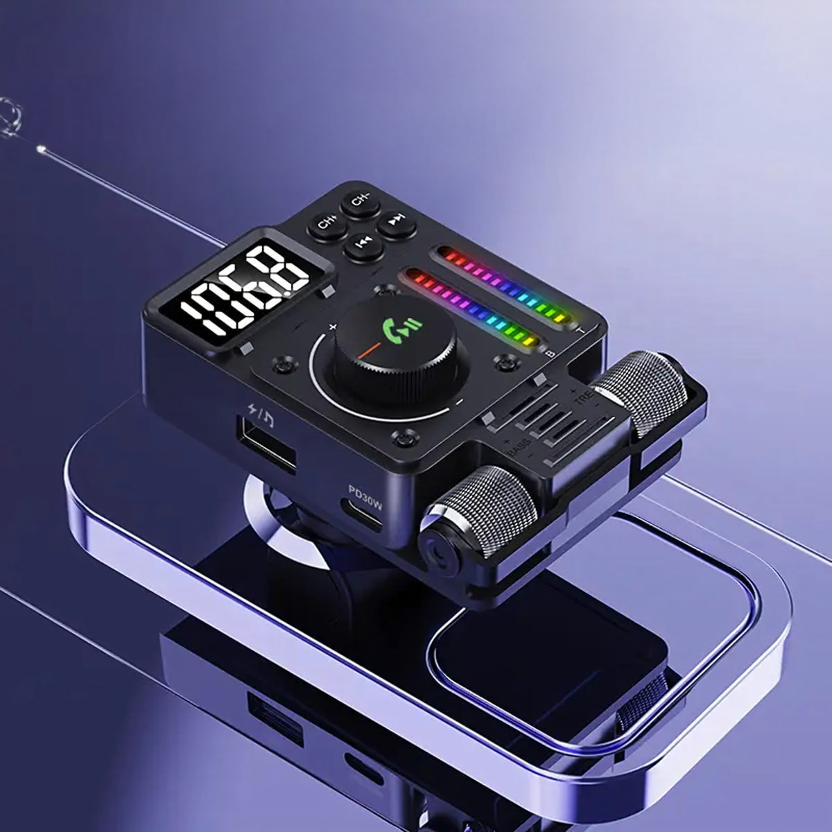 Daudzfunkcionāls automašīnu raidītājs Bluetooth 5.3 ar PD 30W uzlādi, mūzikas atskaņošanu, skaidrām brīvroku sarunām un krāsainu LED apgaismojumu – ideāls veids, kā nodrošināt ērtību un modernu tehnoloģiju savā automašīnā.