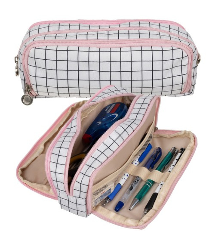 Liels trīsdaļīgs skolas penālis rūtainā dizainā