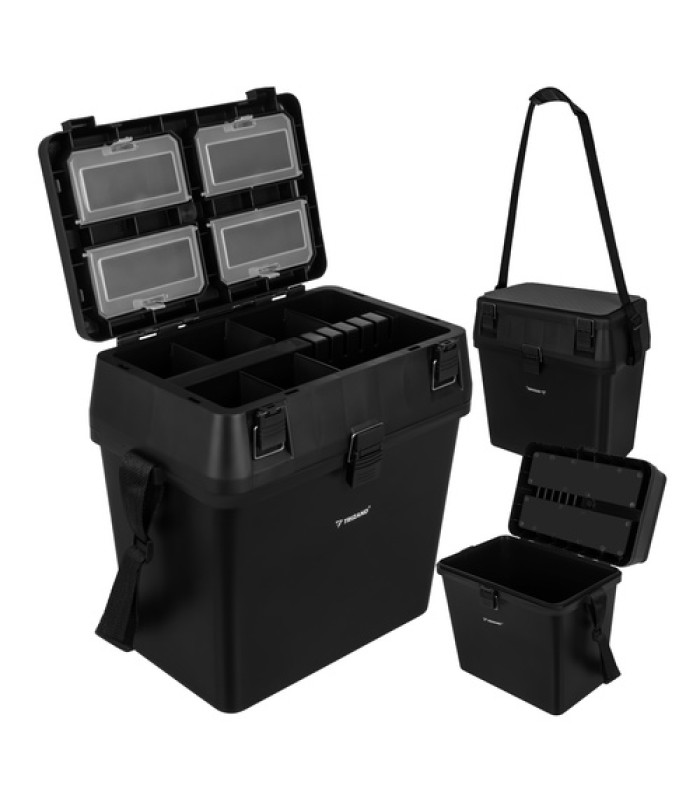 trizand makšķerēšanas kaste ar sēdekli un organizatoru 38x34x21 cm