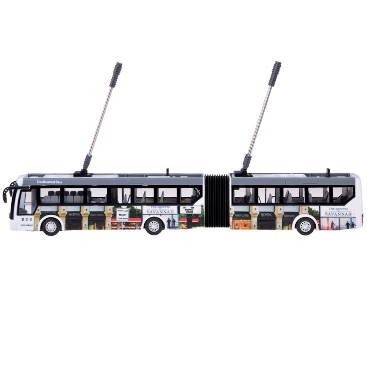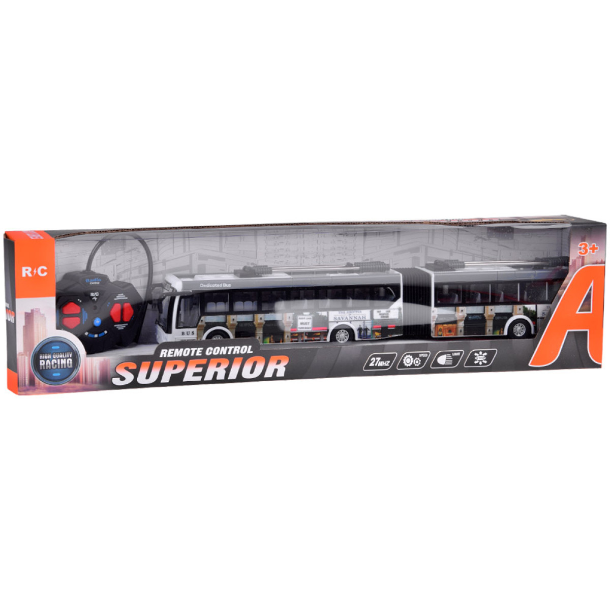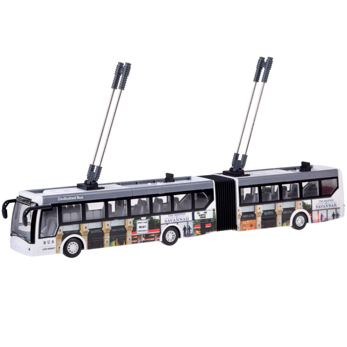 Trolejbuss ar attālināto vadību ir 36 cm garš locītais transportlīdzeklis, kas ir īsts atradums lielu transportlīdzekļu vadītājiem. Balts transportlīdzeklis ir pilnībā izgatavots no plastmasas un braucienu laikā spīd ar LED gaismām.