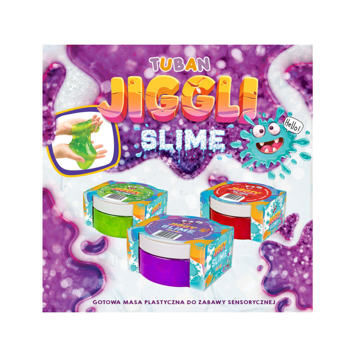 Jiggly Slime zelta pērļu ir īsts pārsteigums prasīgākajiem glutu cienītājiem. Unikālā recepte ļauj Jiggly Slime vienlaikus jautri kratīties kā želeja un stiepties uz visām pusēm kā gumija. Jauns Slime aicina stundām to mīcīt, pārvietot no rokas uz roku, stiept uz visām pusēm vai veidot burbuļus.