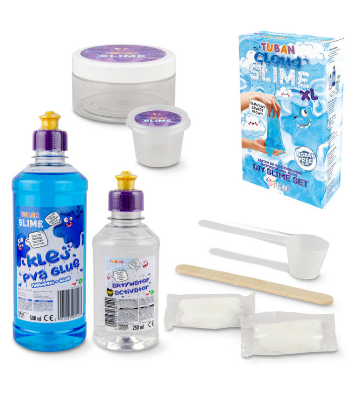 TUBAN Slime XL Cloud komplekts ir ideāls piedāvājums bērniem, kuriem patīk eksperimentēt! Slime ir populāra spēle bērnu vidū, un ar šo komplektu var izveidot savu slime pilnīgi patstāvīgi. Modelis Cloud noteikti izceļas starp visu citu slime klāstu. Kāpēc? Pievienojot mākslīgo sniegu, tas iegūst unikālu konsistenci, kas atgādina pūkainu mākoni!