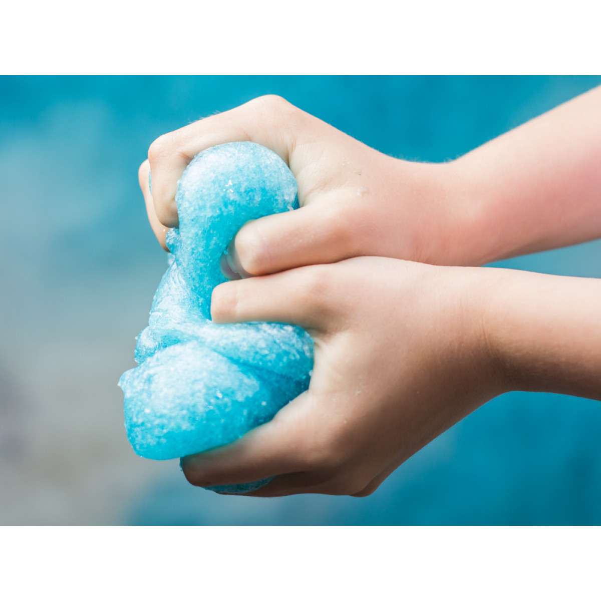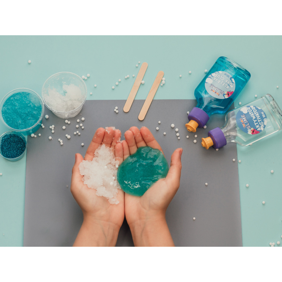 5. Atsevišķā konteinerī sagatavo mākslīgo sniegu (vislabāk, ja pulverim pievieno aktivatoru) un sajauc ar iepriekš sagatavoto slime. Tādējādi iegūsi glutēnu ar unikālu un vieglu struktūru.