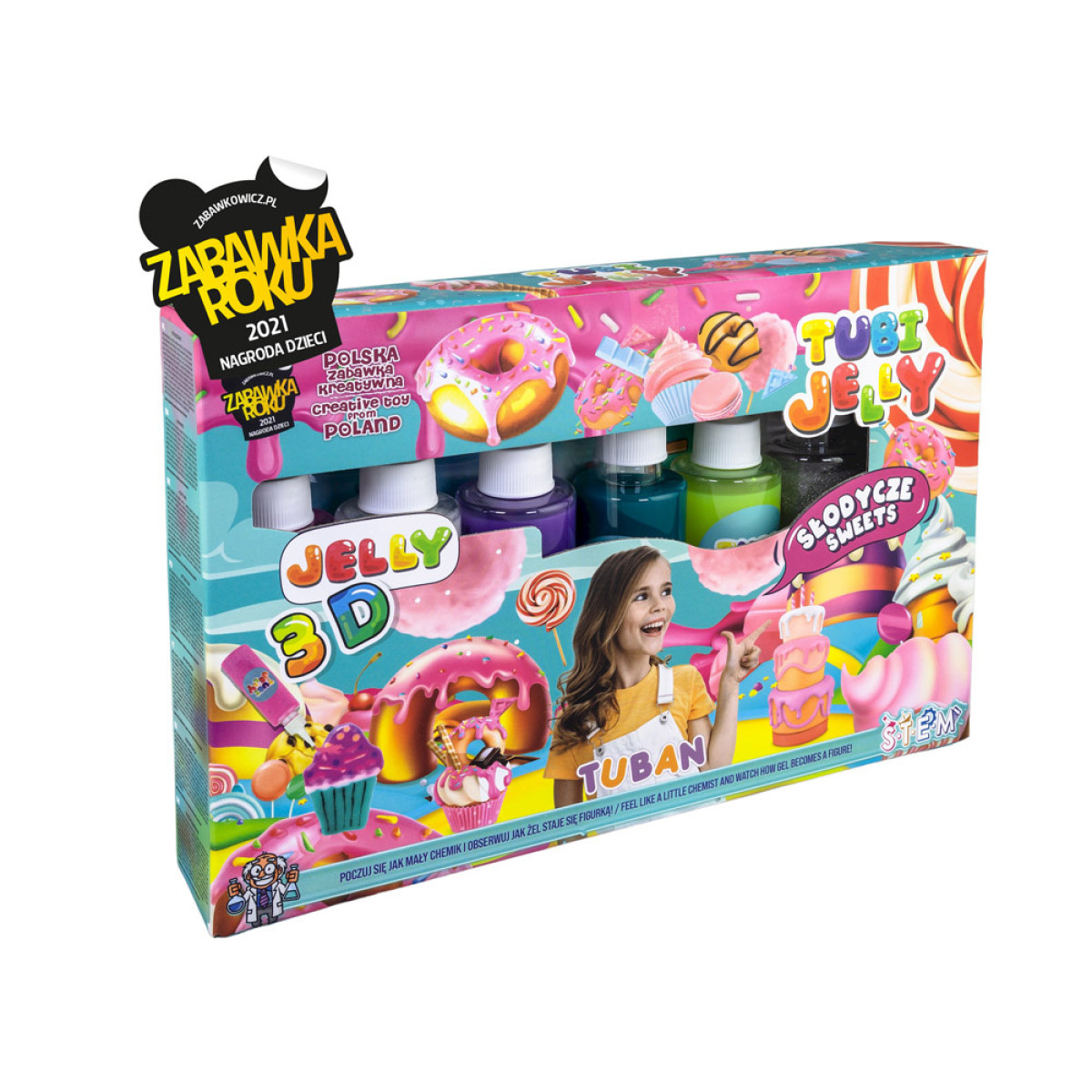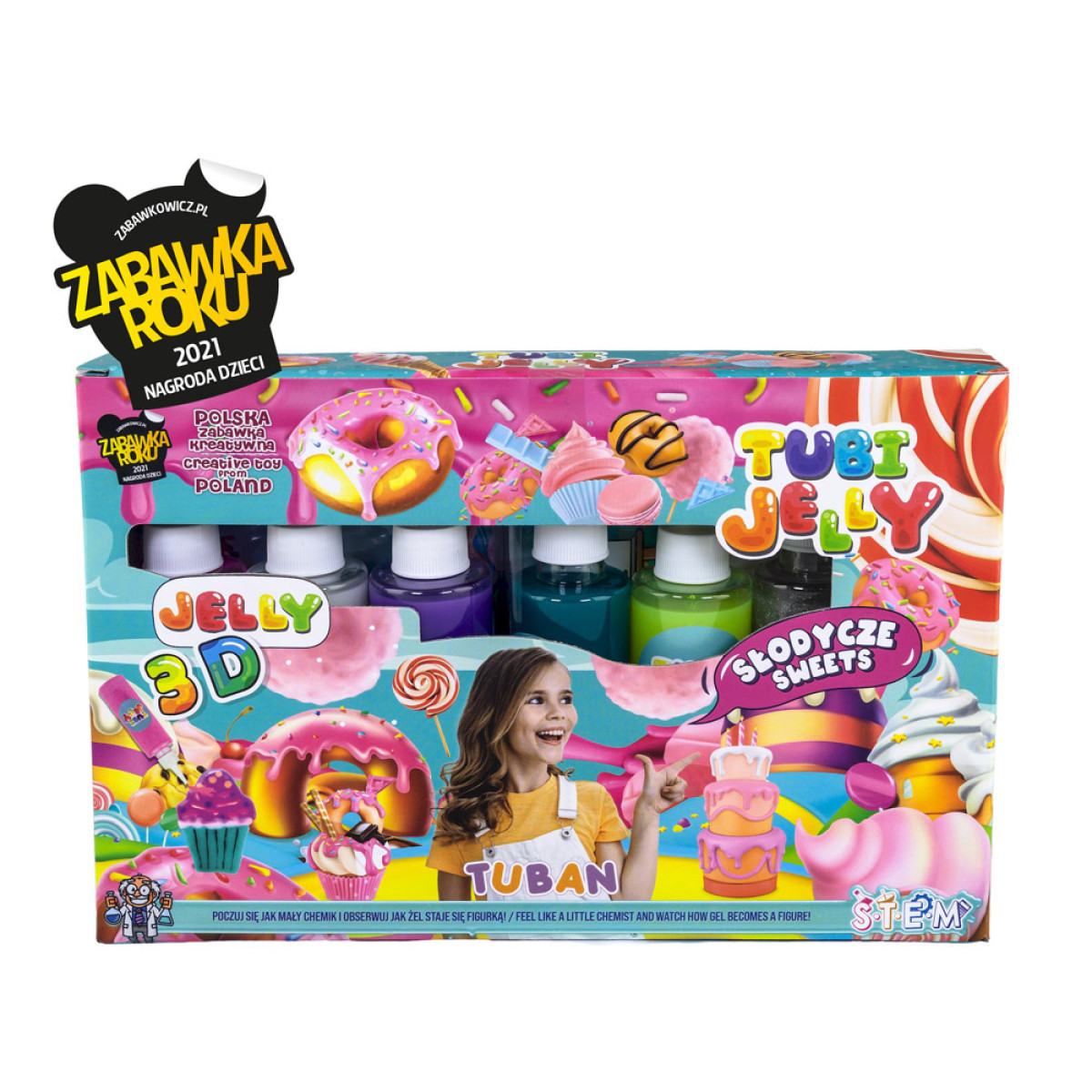Izbaudiet aizraujošu ķīmijas pieredzi un skatieties, kā želeja pārvēršas par figūru! Tubi Jelly ir jauna plastmasas masa, kas pēc savienojuma ar atbilstošu aktivatoru ļauj veidot trīsdimensiju figūras ar želejveida konsistenci. Ienirstiet Tubi Jelly želejas pasaulē…