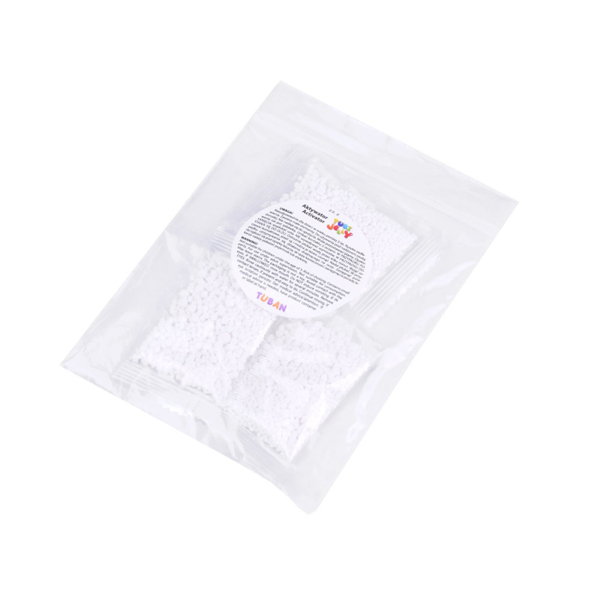 Taisnstūrveida traukā, kas ir iekļauts komplektā, sagatavo aktivatoru, kas nepieciešams želeju sacietēšanai. Lai to izdarītu, ielej pulveri 400 ml auksta ūdens un maisi, līdz pulveris pilnībā izšķīst.