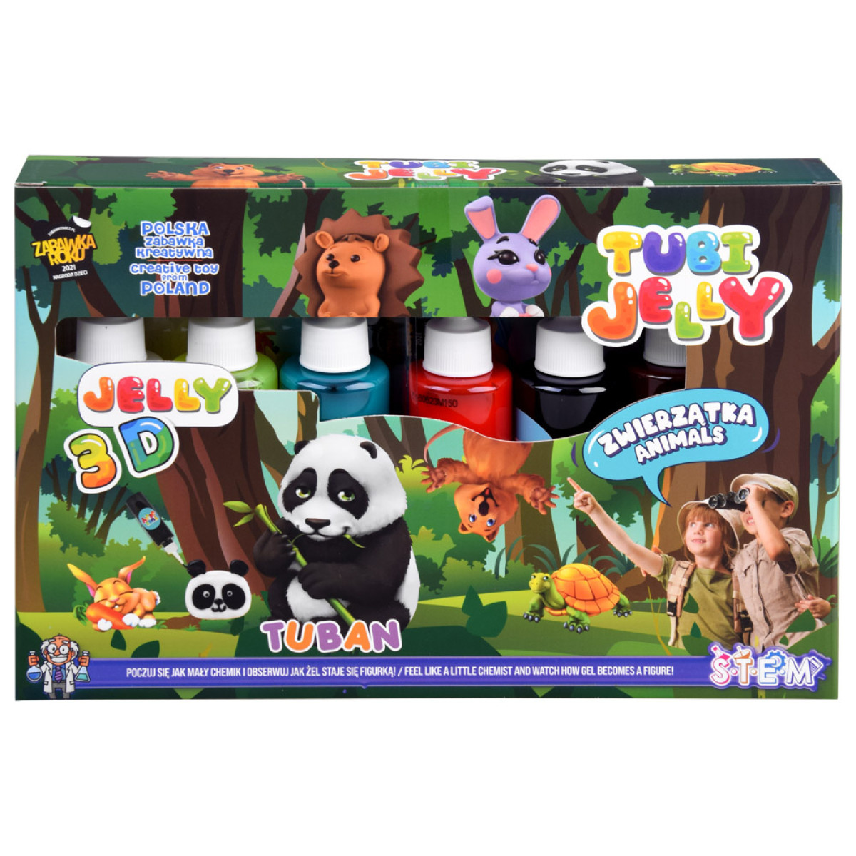 Tubi Jelly ir jauns plastilīna veids, kas, sajaucoties ar atbilstošu aktivatoru, ļauj izveidot trīsdimensiju figūriņas ar želejveida konsistenci.
