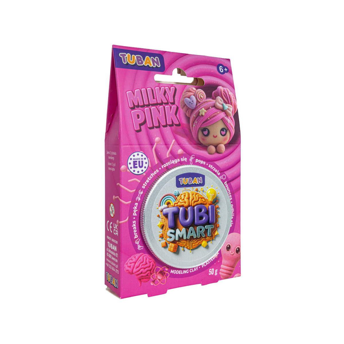 Priekšrocības: Tubi Smart rozā plastilīns ar baltām daļiņām ir lieliska izvēle bērniem, kuri mīl radošas un sensoru spēles. Šis elastīgais, mīkstais un patīkamais materiāls izstiepjas, plaisā, atsitas un piedāvā daudz eksperimentēšanas iespēju. Bērni var to mīcīt, sadalīt, veidot jebkādas formas, attīstot savu radošumu un telpisko iztēli.